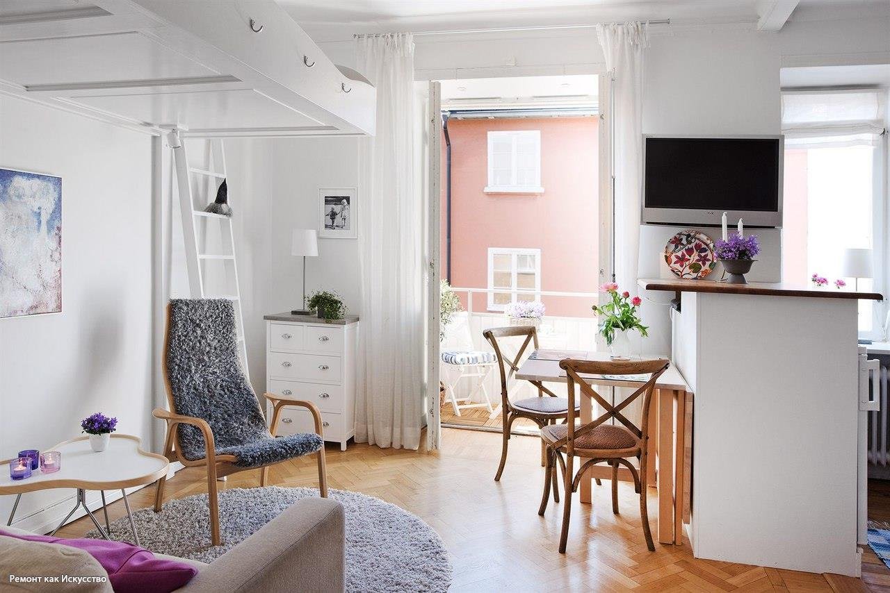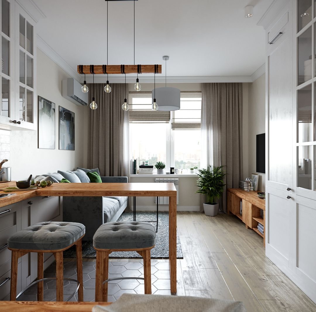 Кухня-гостиная в скандинавском стиле 40 кв