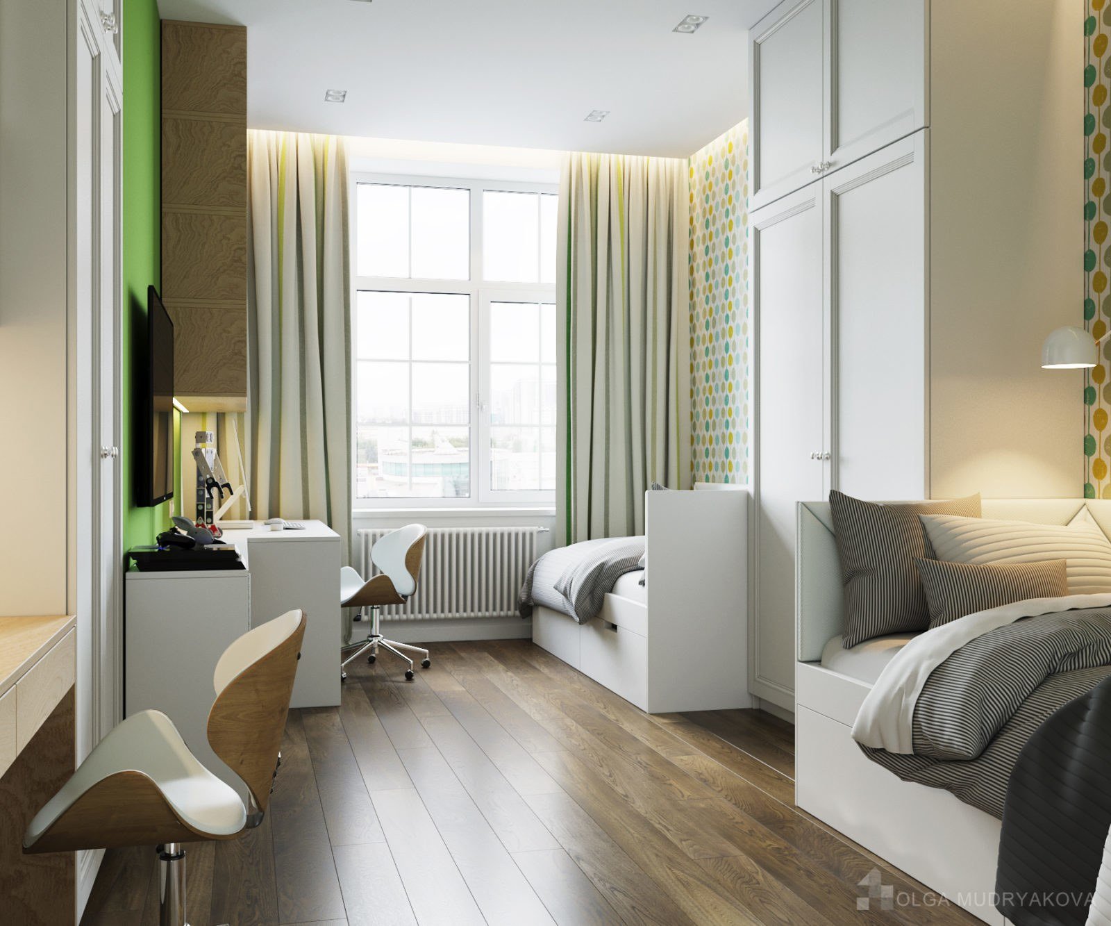 Зонирование комнаты на 2 спальных места
