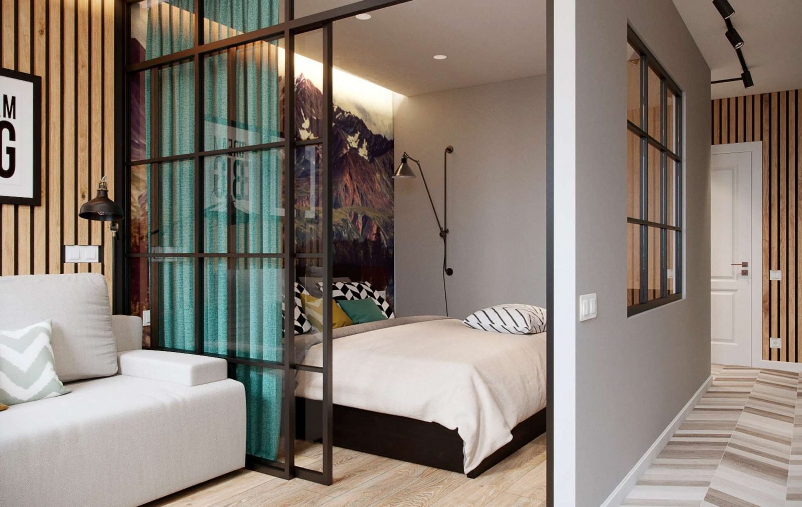 Зонирование студии 20 кв.м с перегородкой