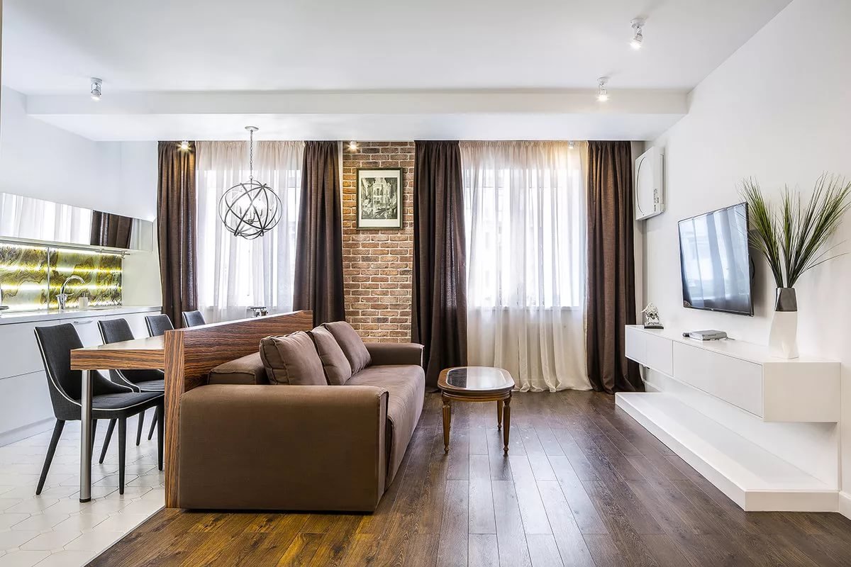 Интерьер однокомнатной студии 45 кв.м