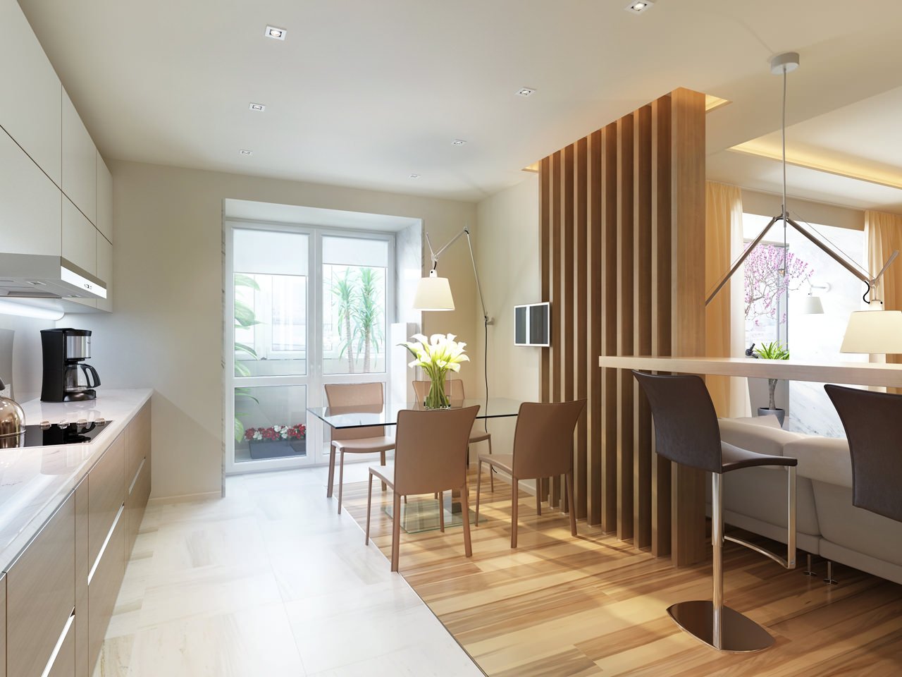 Зонирование кухни и гостиной