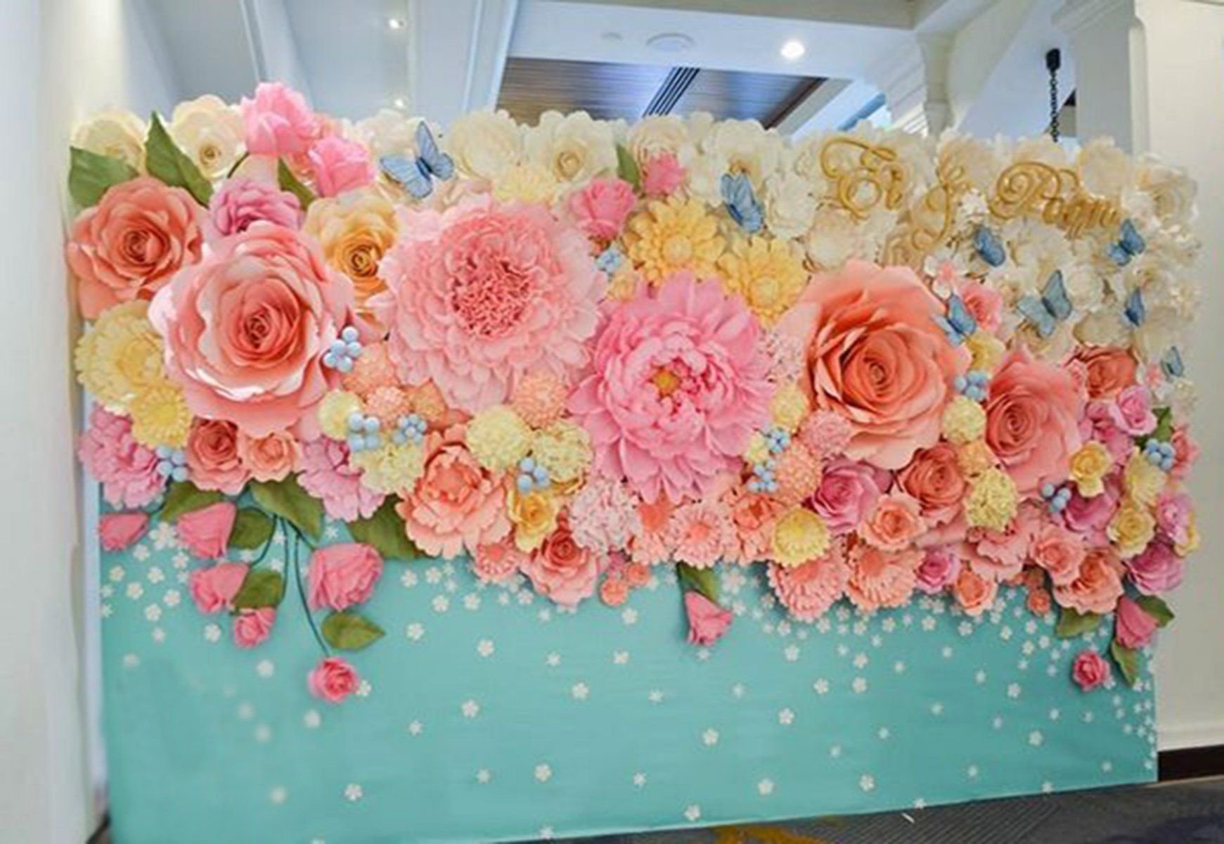 Стена из бумажных цветов