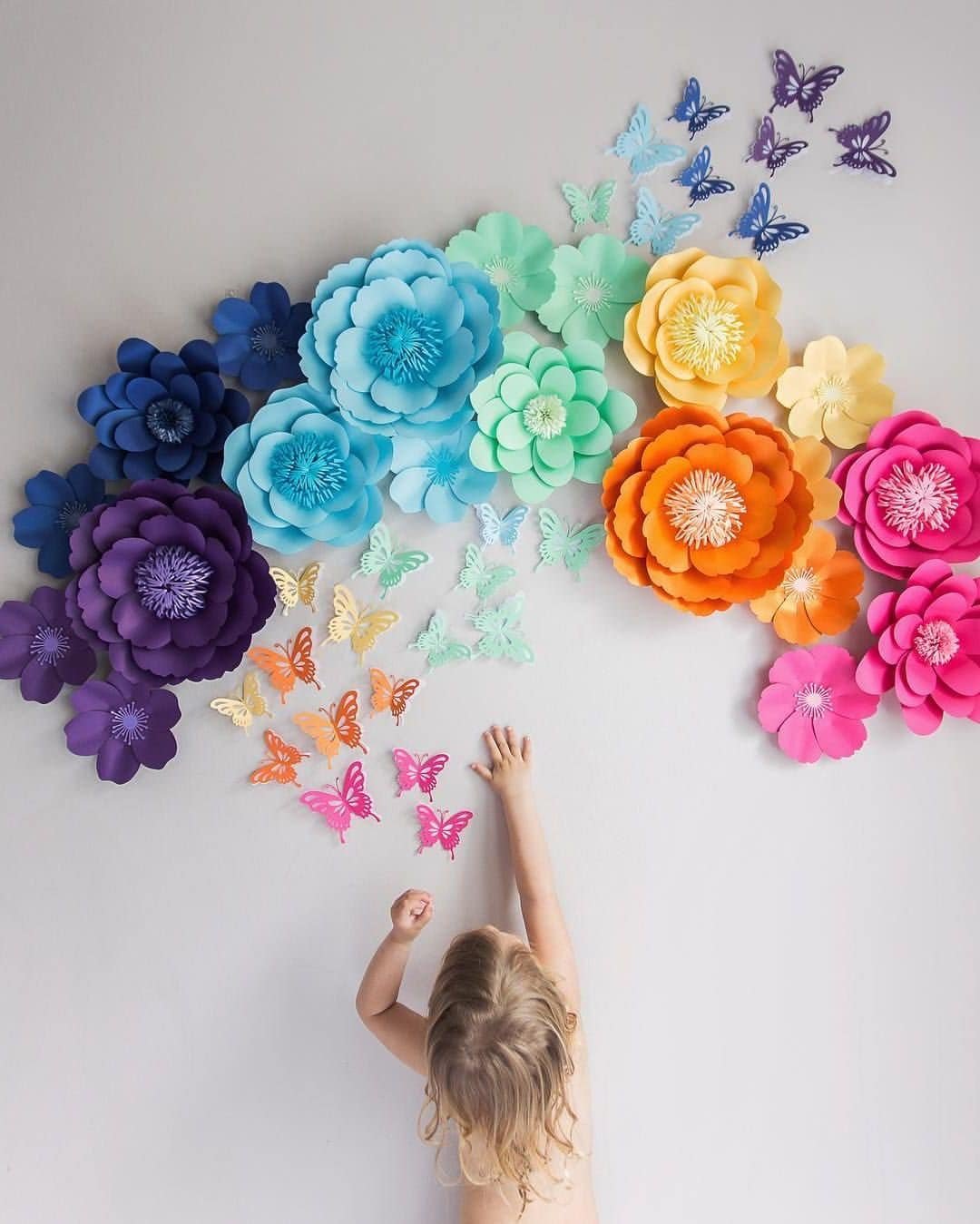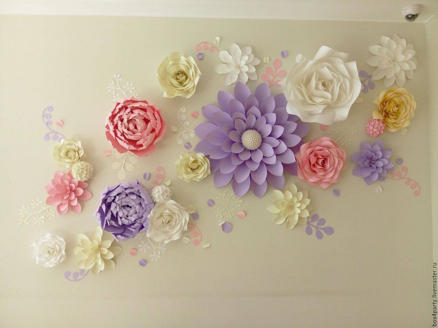 Бумажные цветы для украшения стены