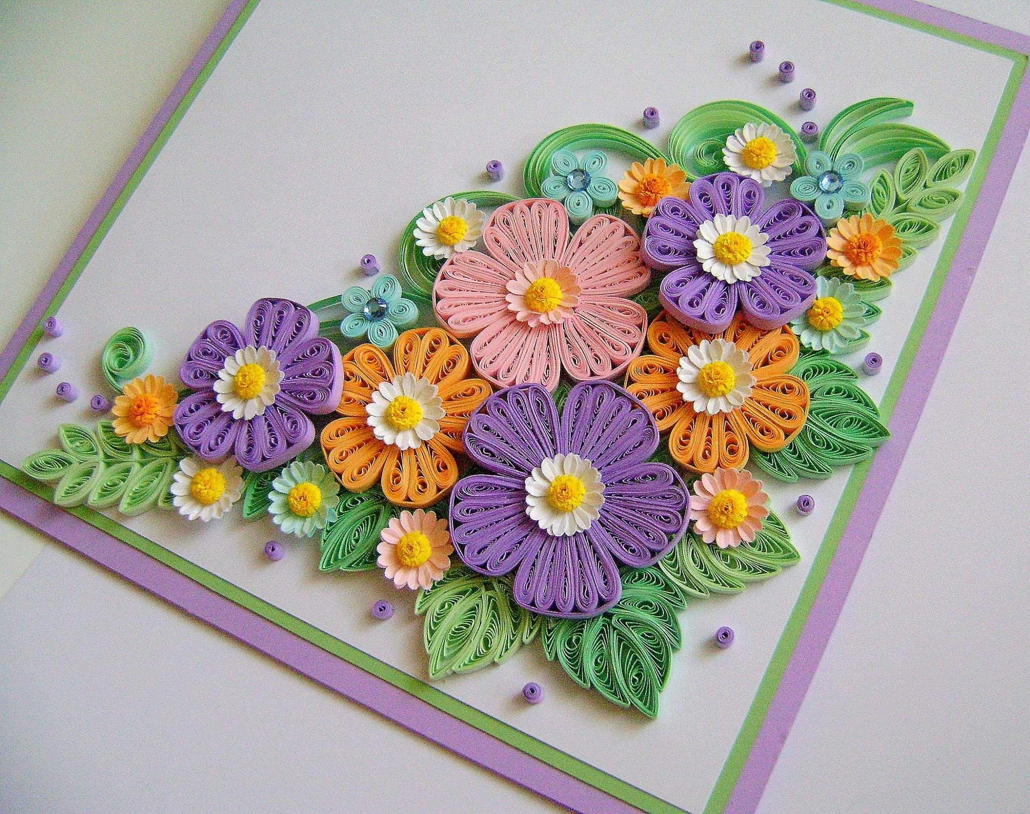 Открытка с цветами из цветной бумаги