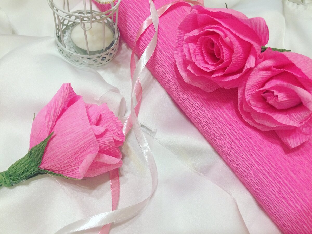 Розы из гофрированной бумаги