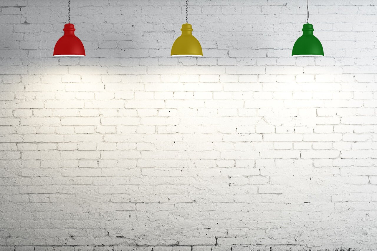 Кирпичная стена с лампами
