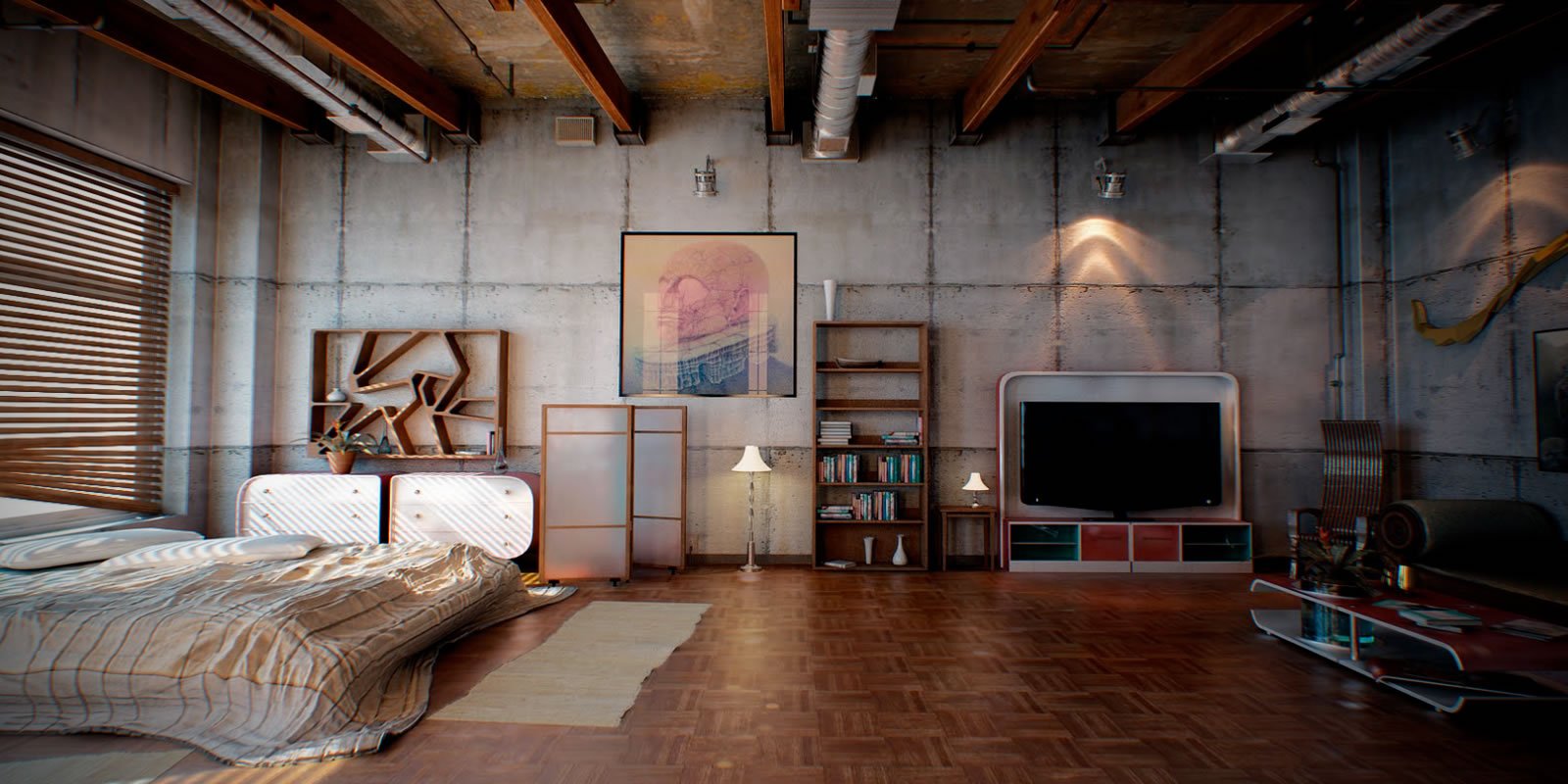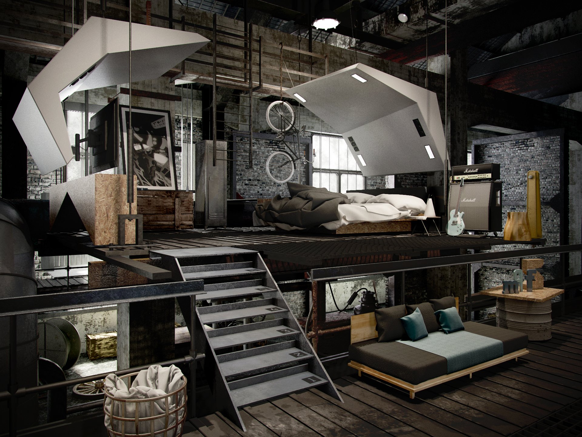 Спальня в стиле лофт индустриал
