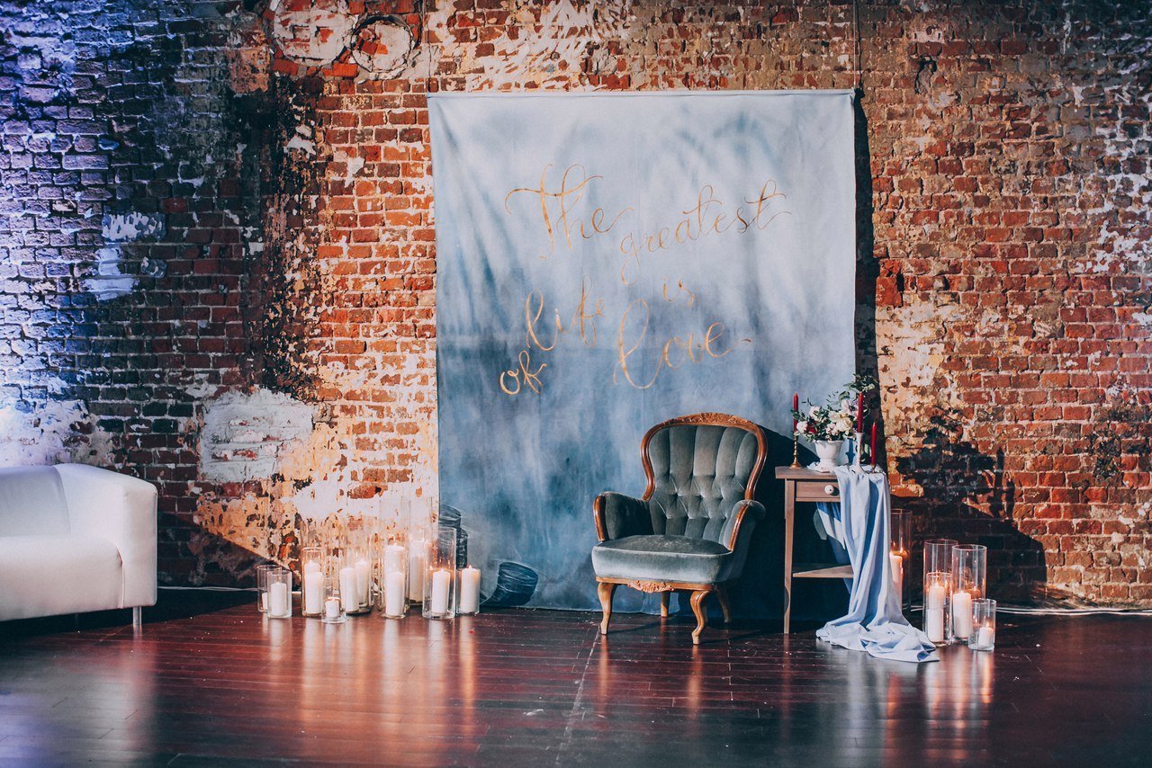Фотозона в стиле лофт на свадьбу