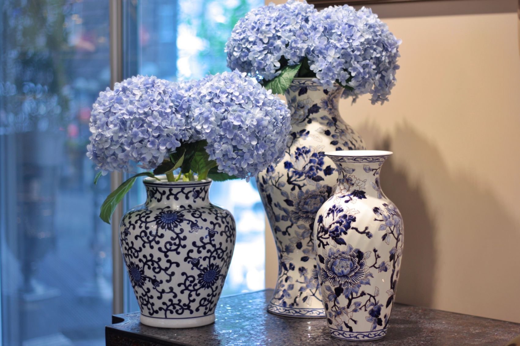 Вазы с цветами синие