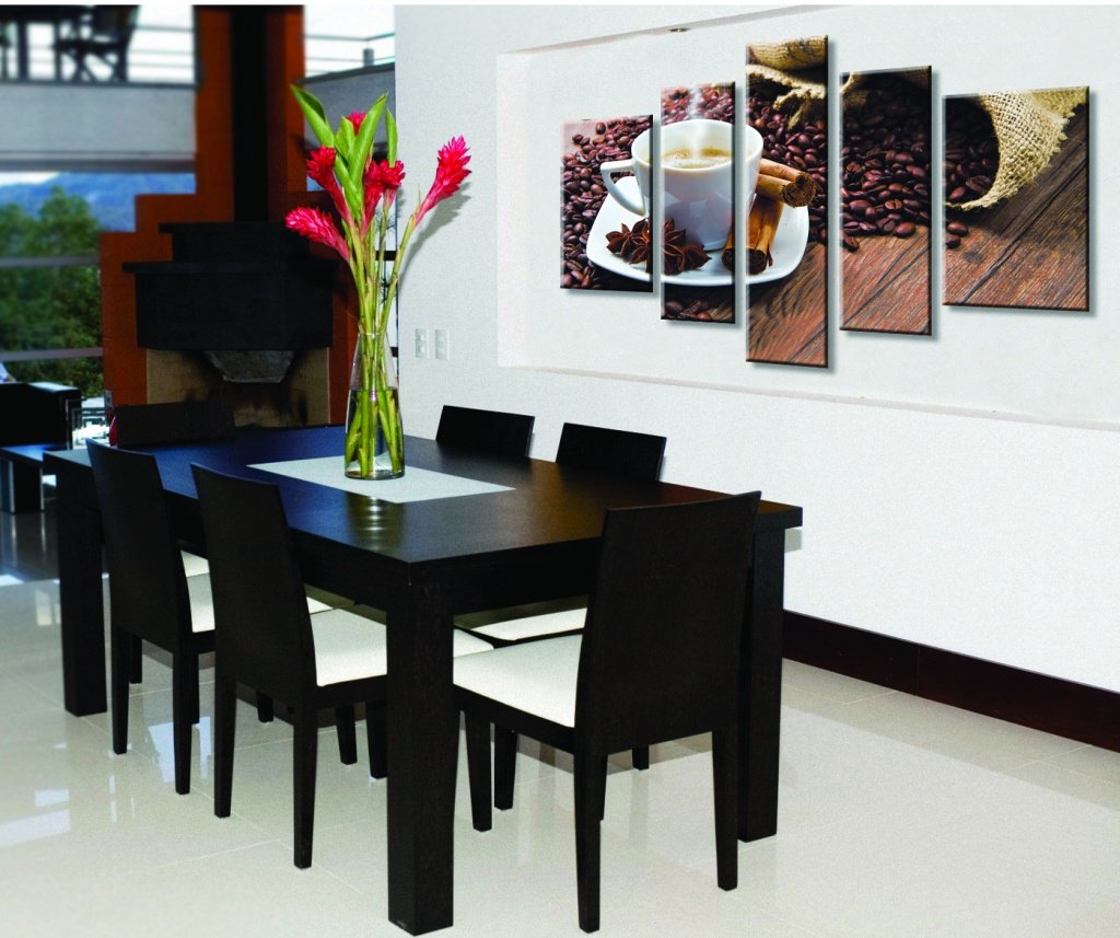 Модульные картины в интерьере кухни