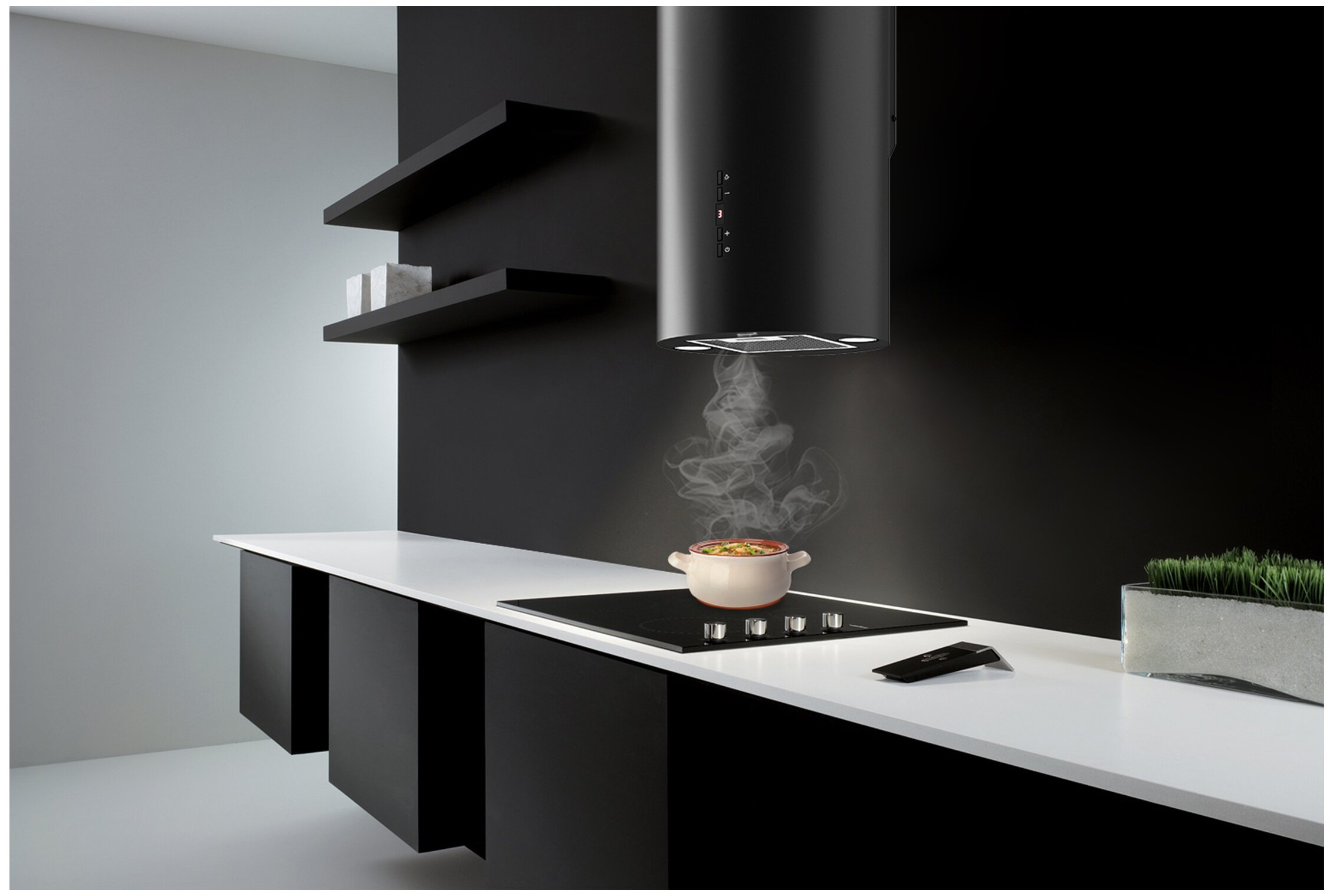 Цилиндрическая вытяжка для кухни в интерьере