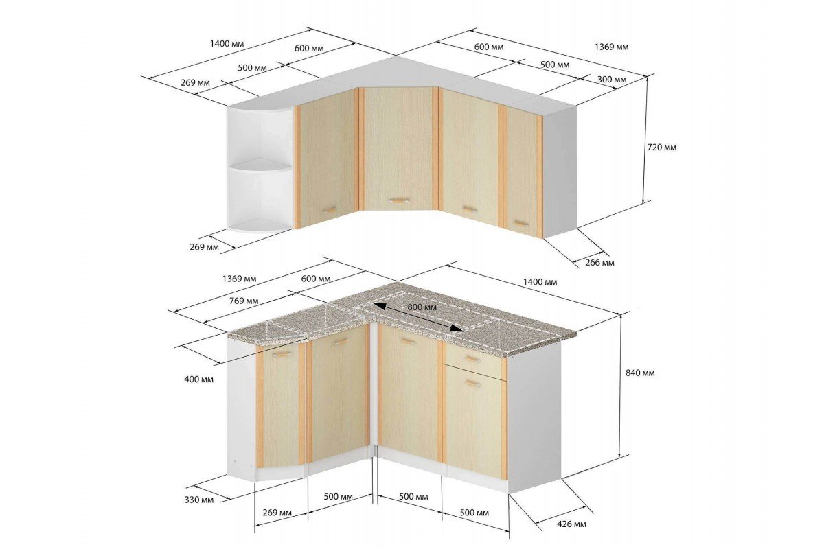 Кухня угловая Бланка 1.4х1.4м дуб кремона