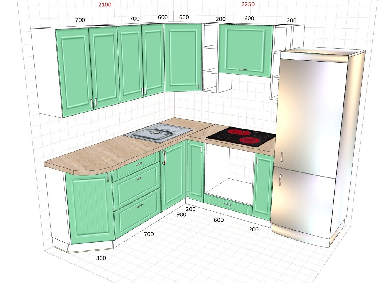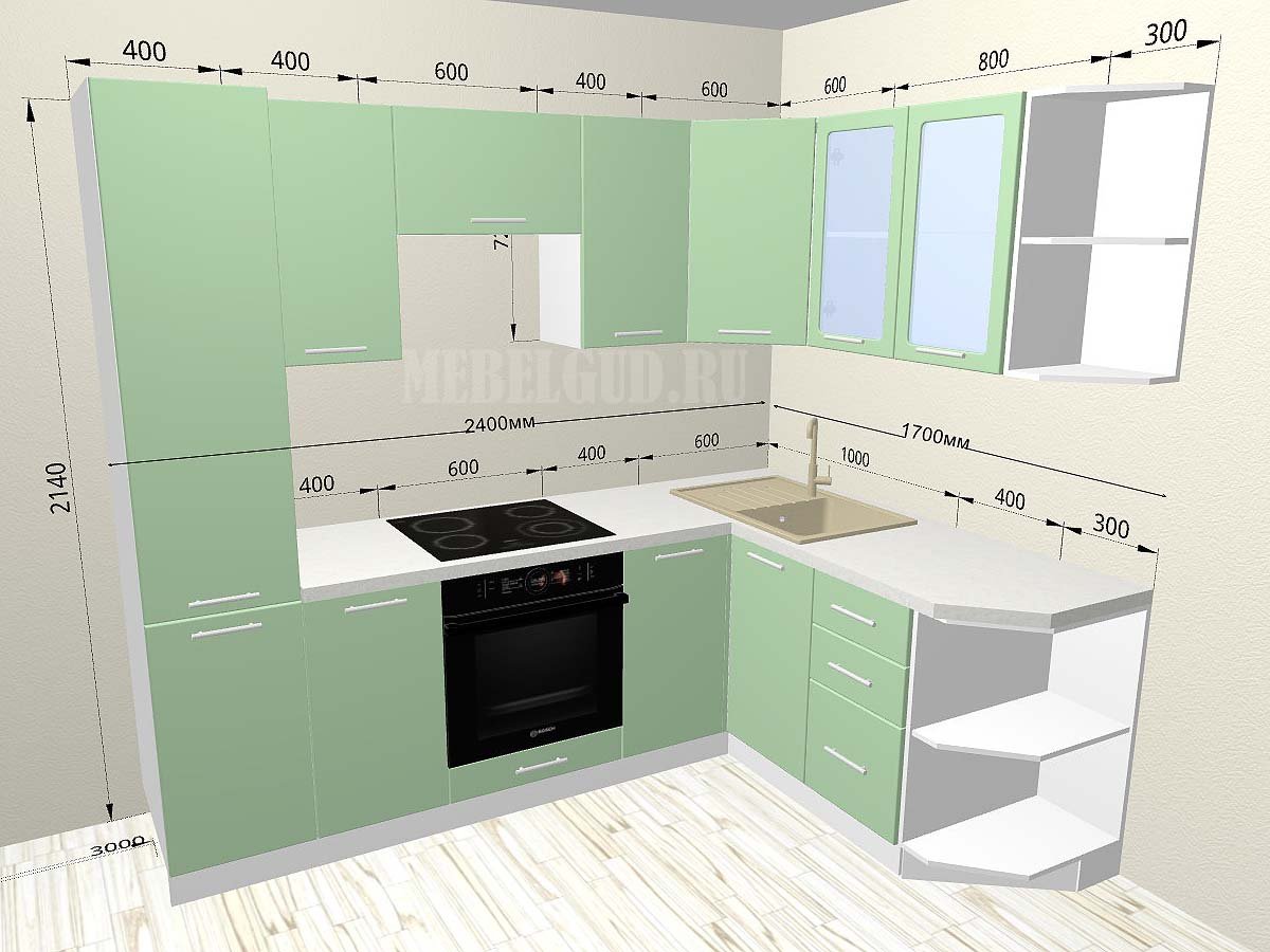 Кухонный гарнитур София Mix угловой 1800х1000 белый зелёный антрацит