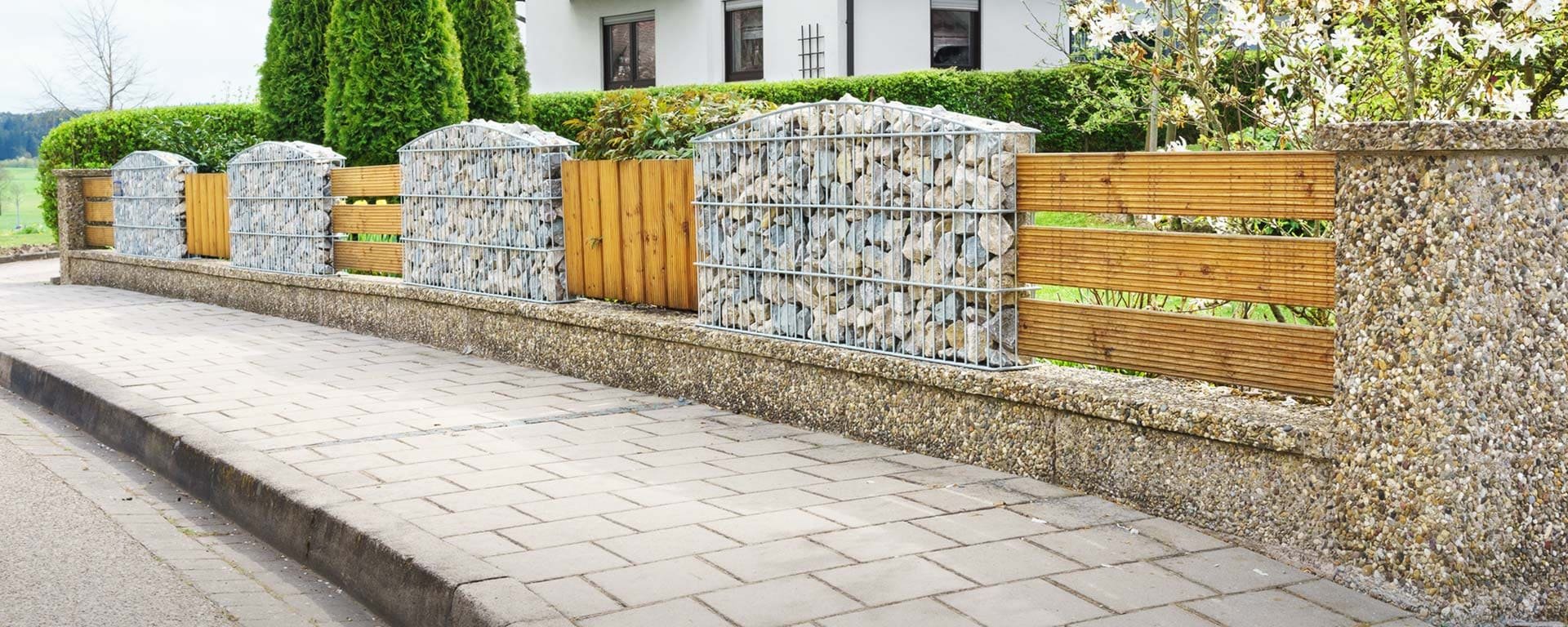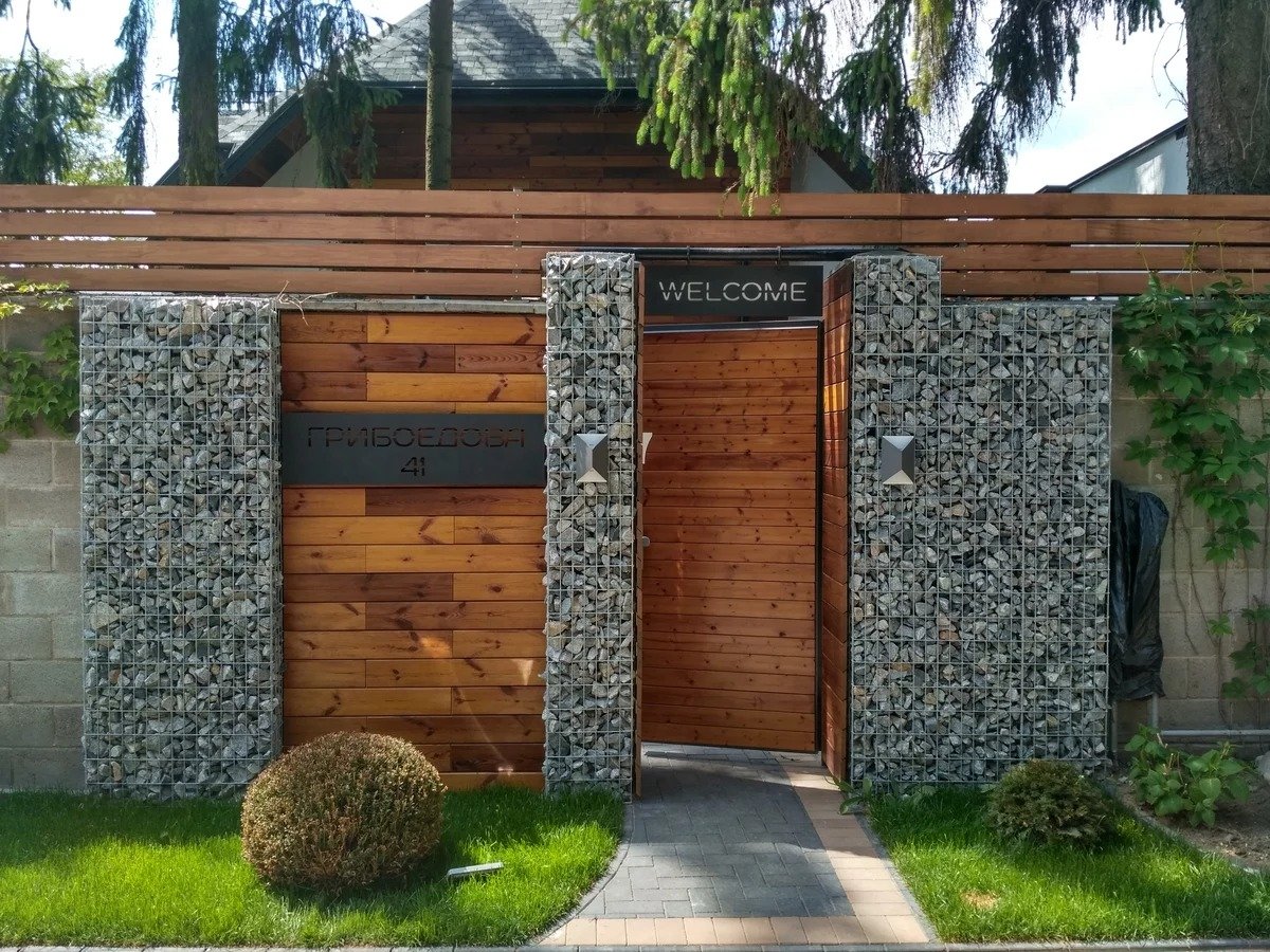 Забор из габионов и дерева