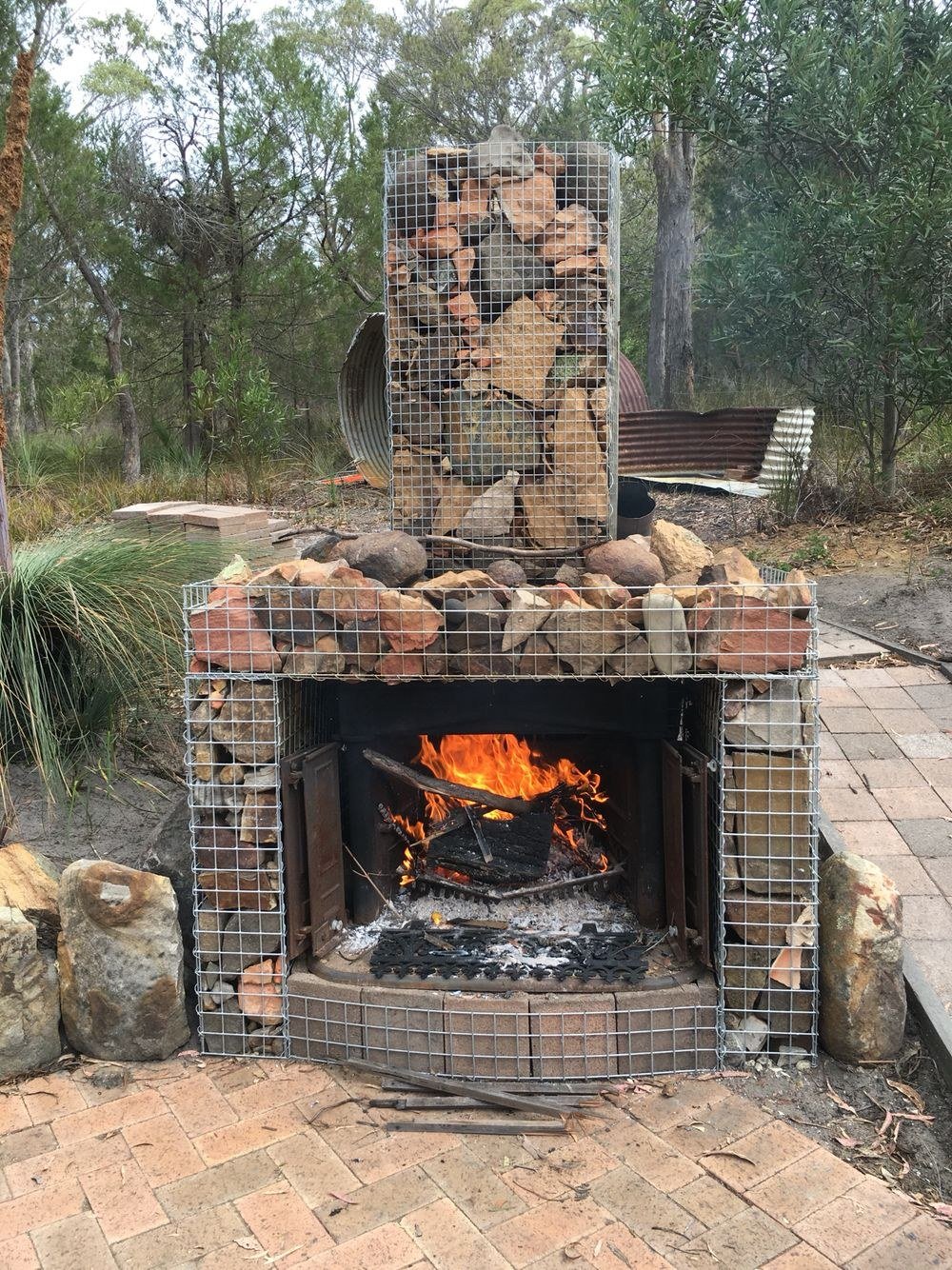 Габион камин уличный