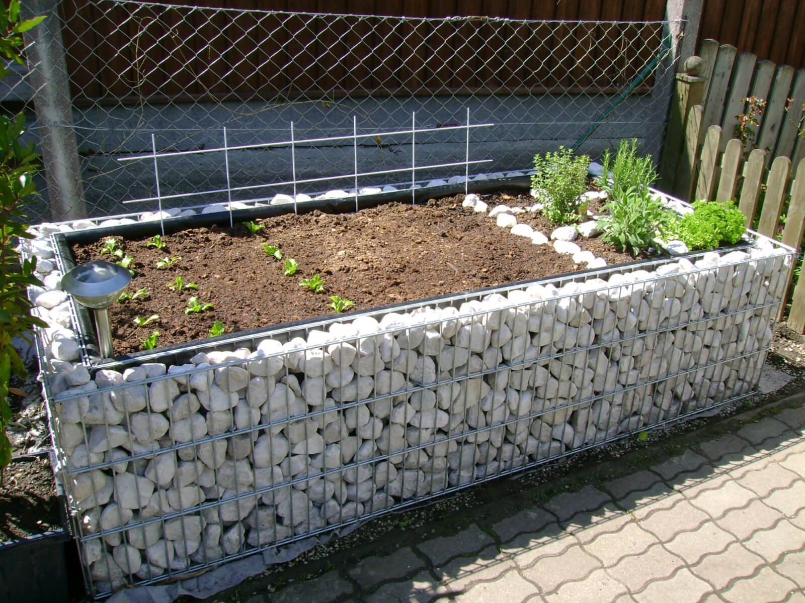 Клумба из сетки и камней