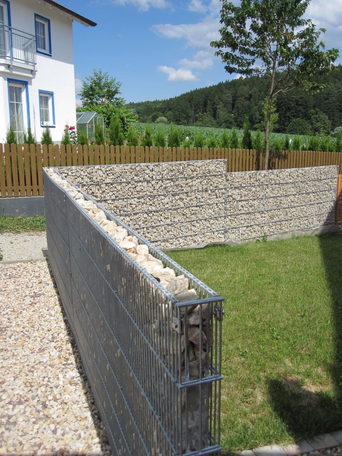 Забор из габионов и живой изгороди