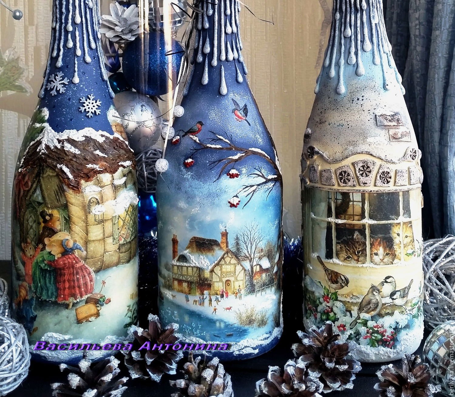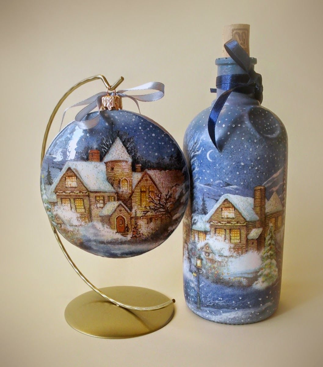 Зимний декупаж бутылки