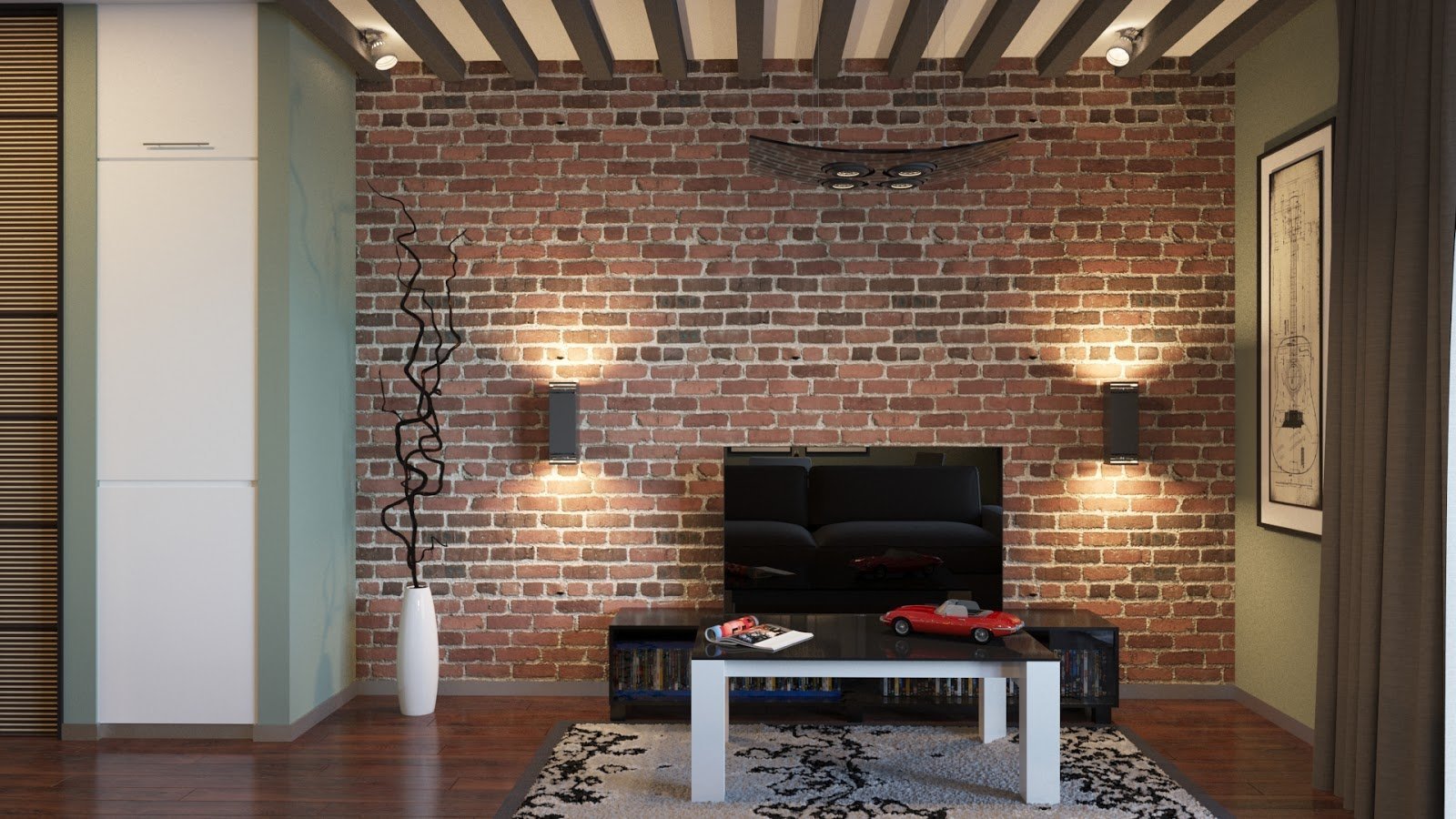 Кирпичная стена в интерьере