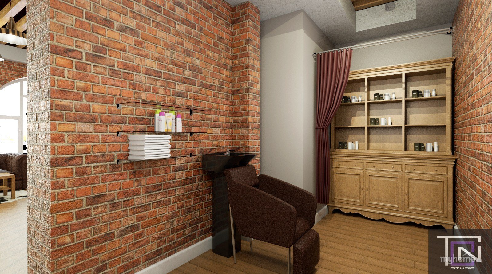 Кирпич в интерьере и плинтус