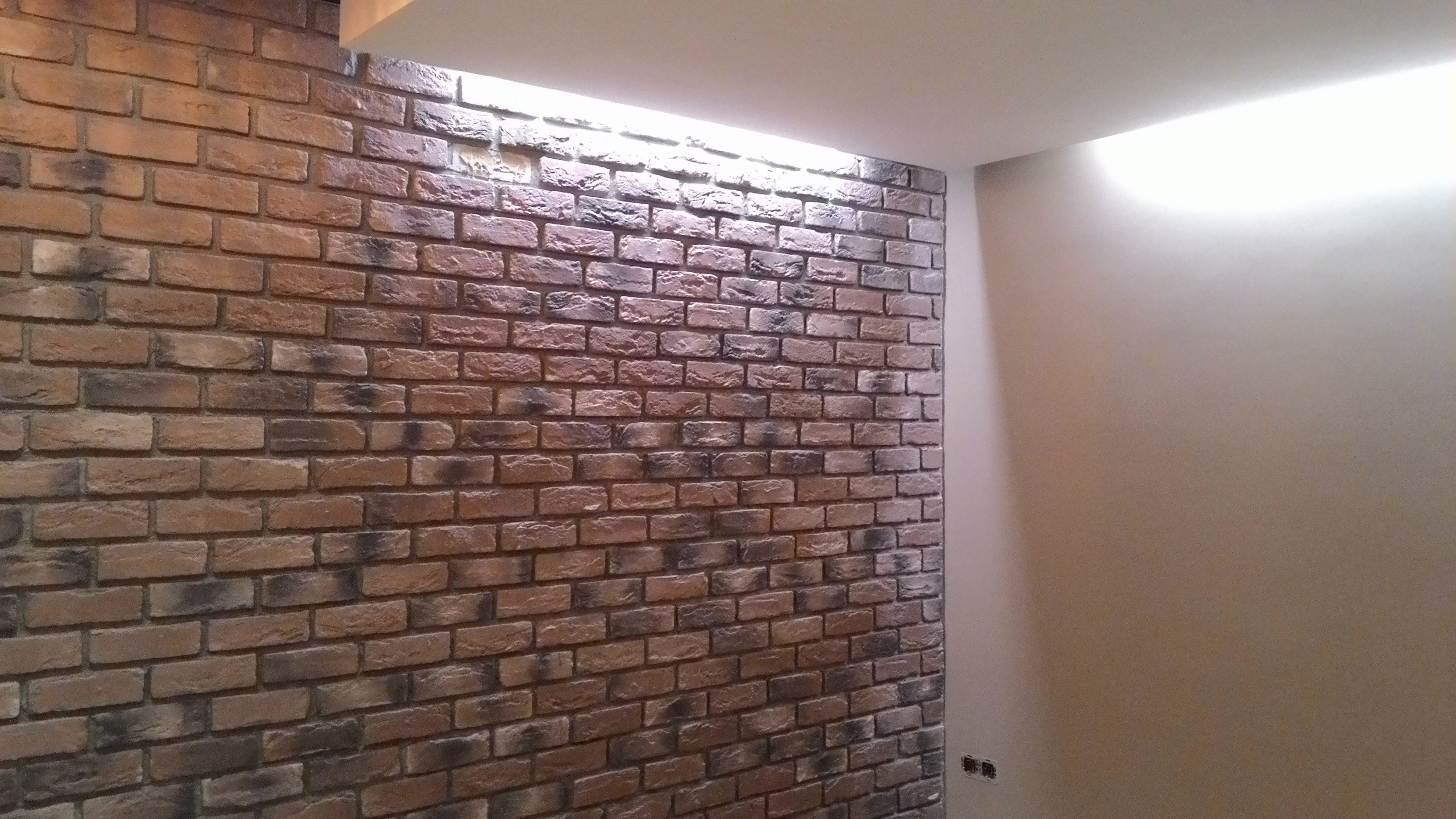 Декоративный кирпич и натяжной потолок