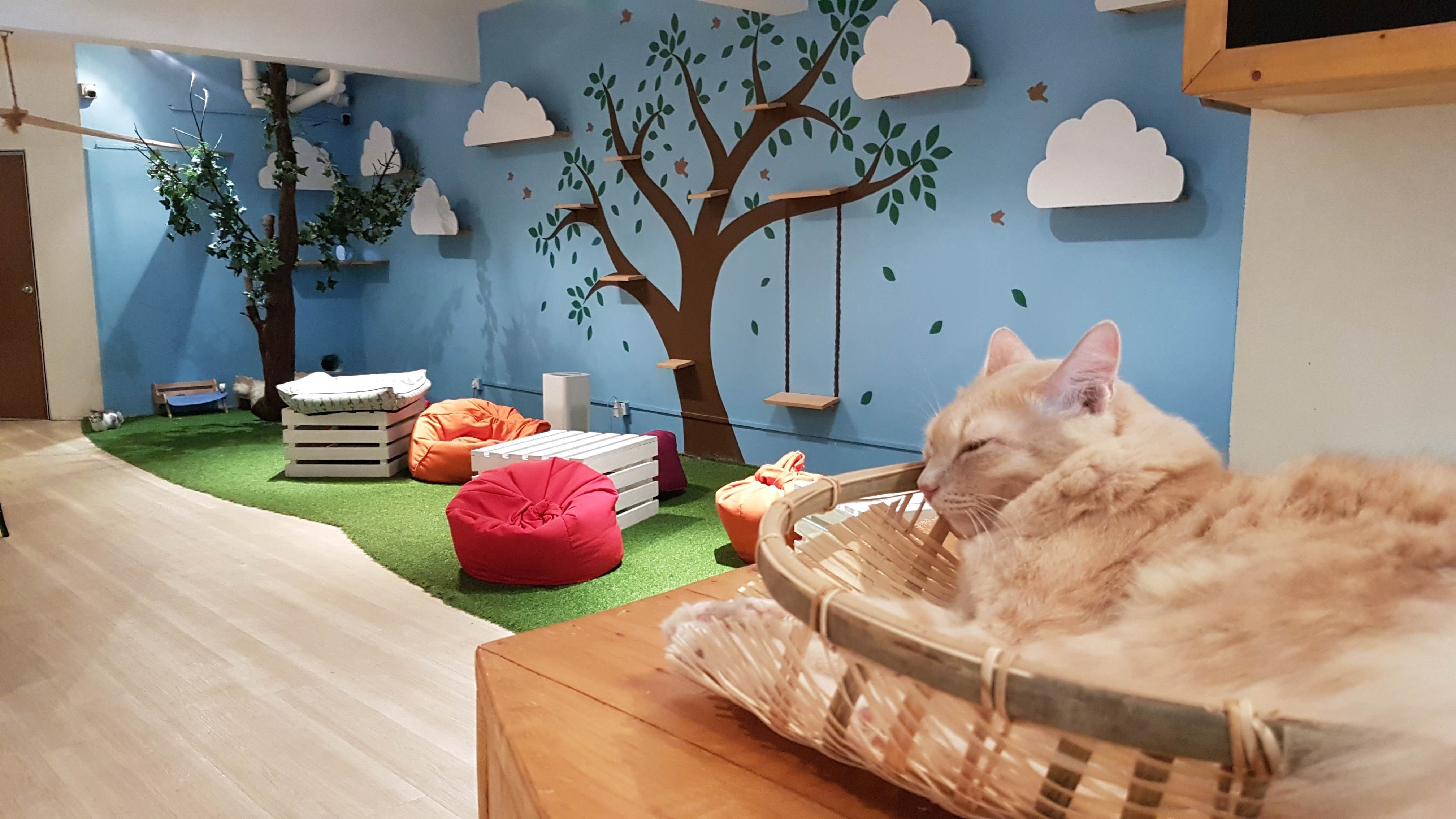 Отель для кошек фон интерьер