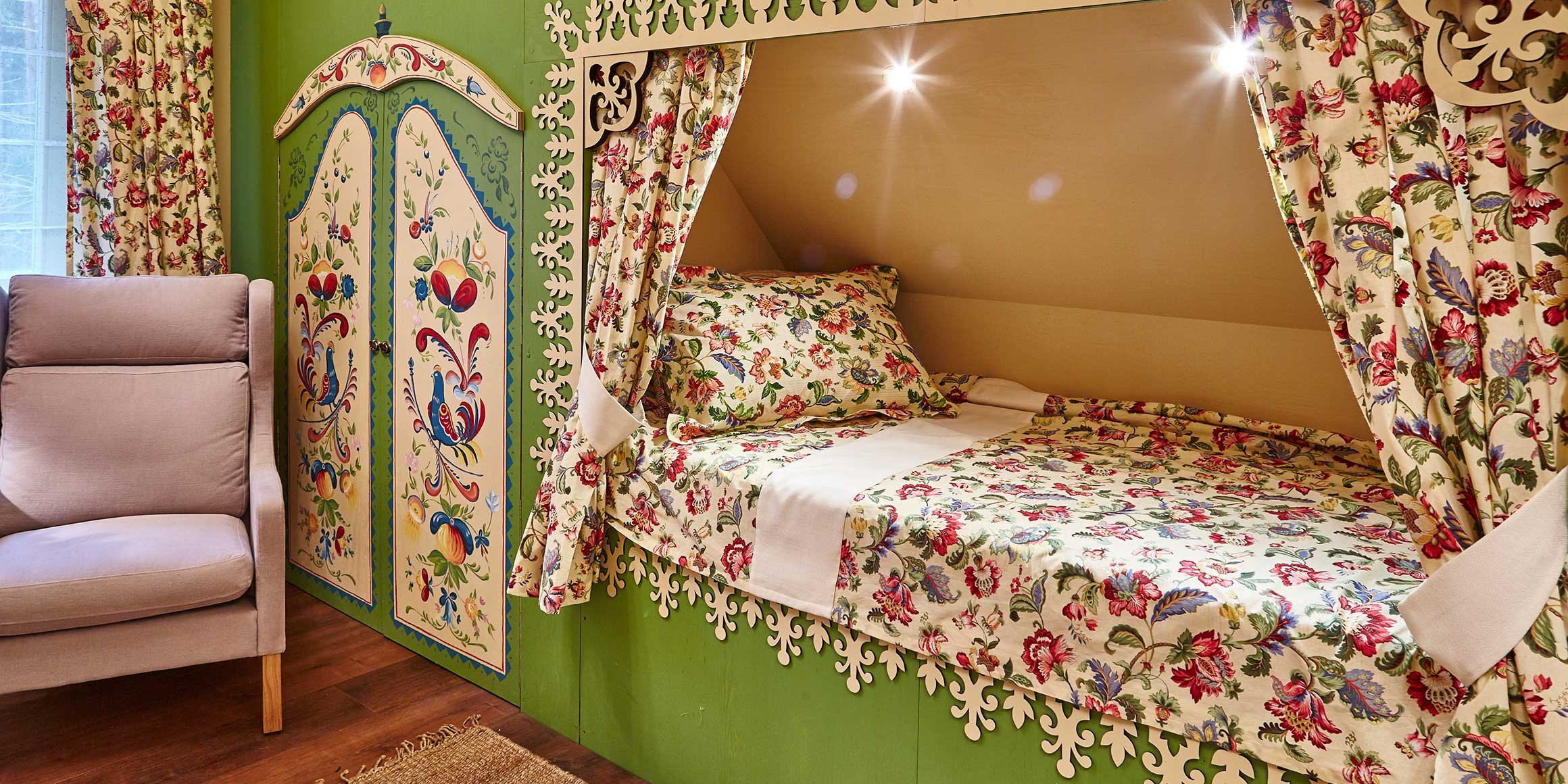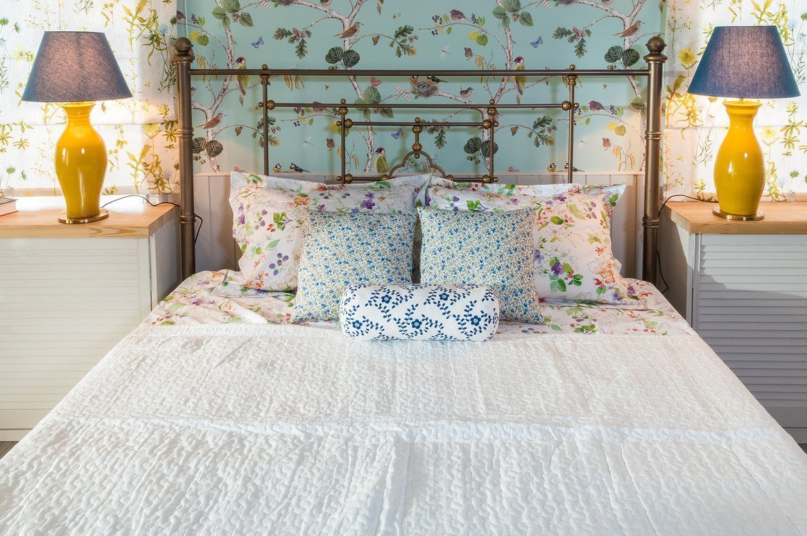 Интерьер маленькой спальни обои птички