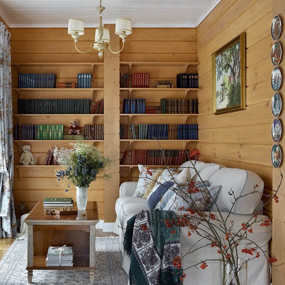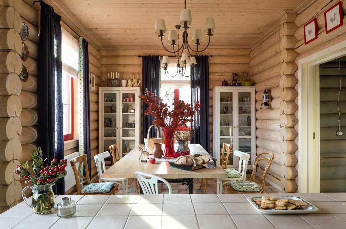 Интерьер загородного дома из бруса в стиле Кантри
