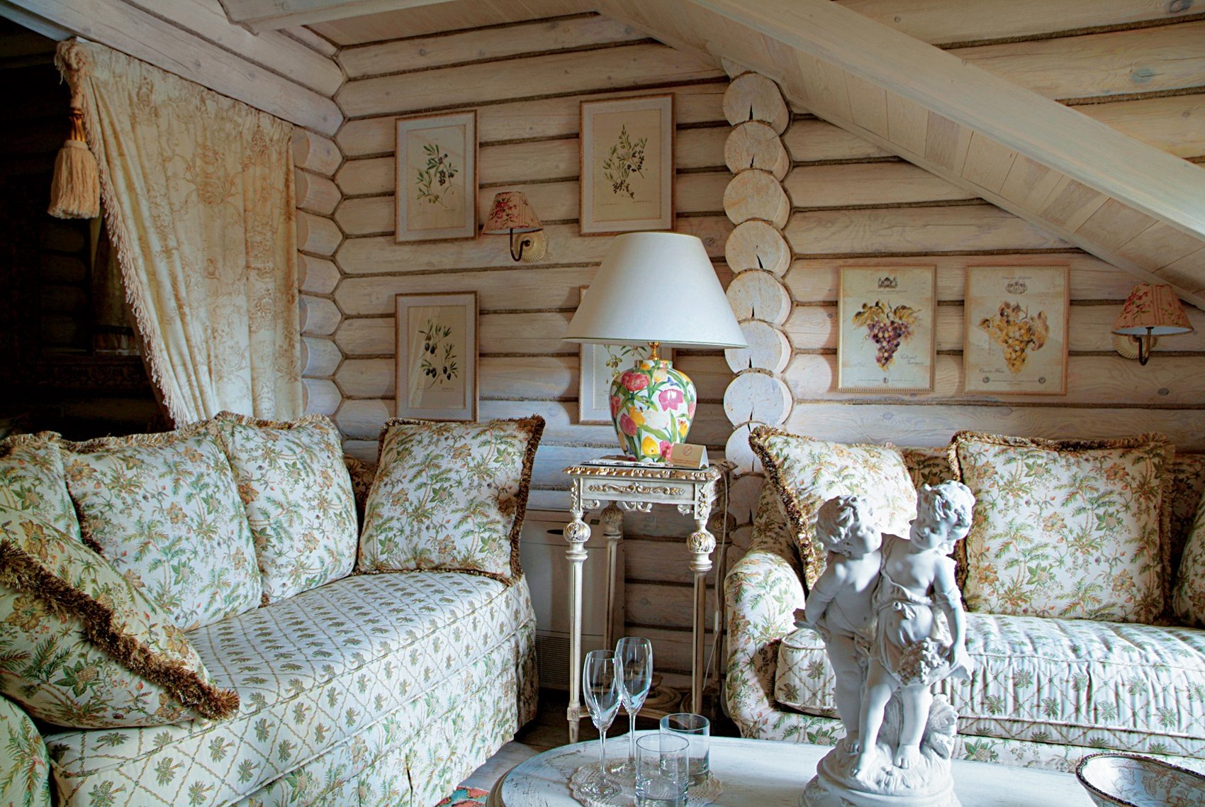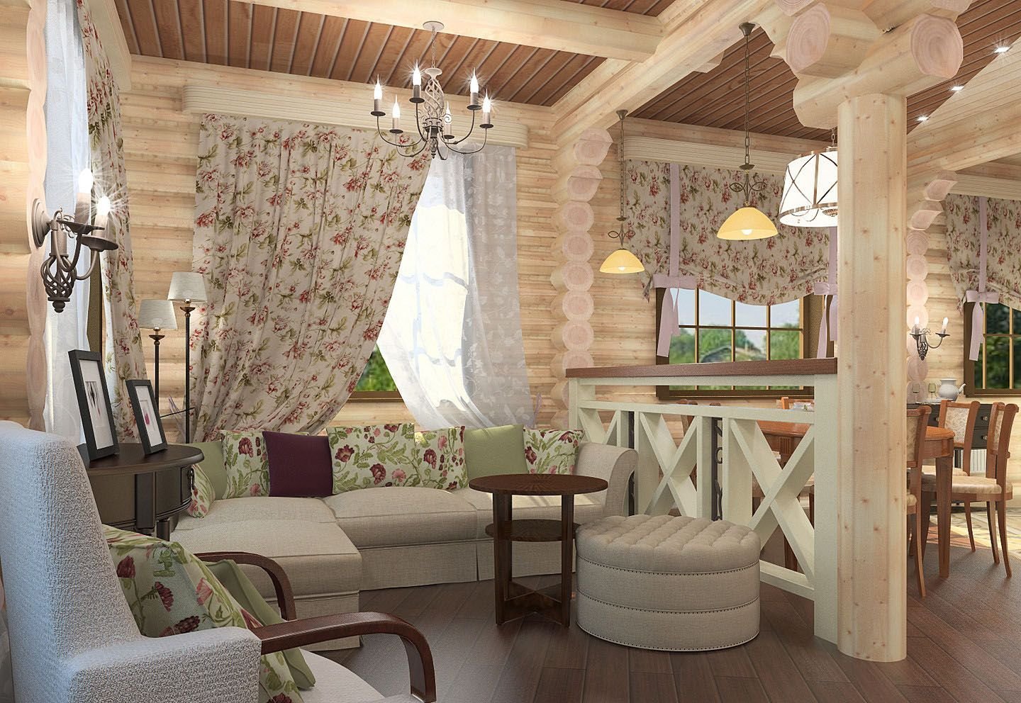 Гостиная Прованс Кантри в бревенчатом доме