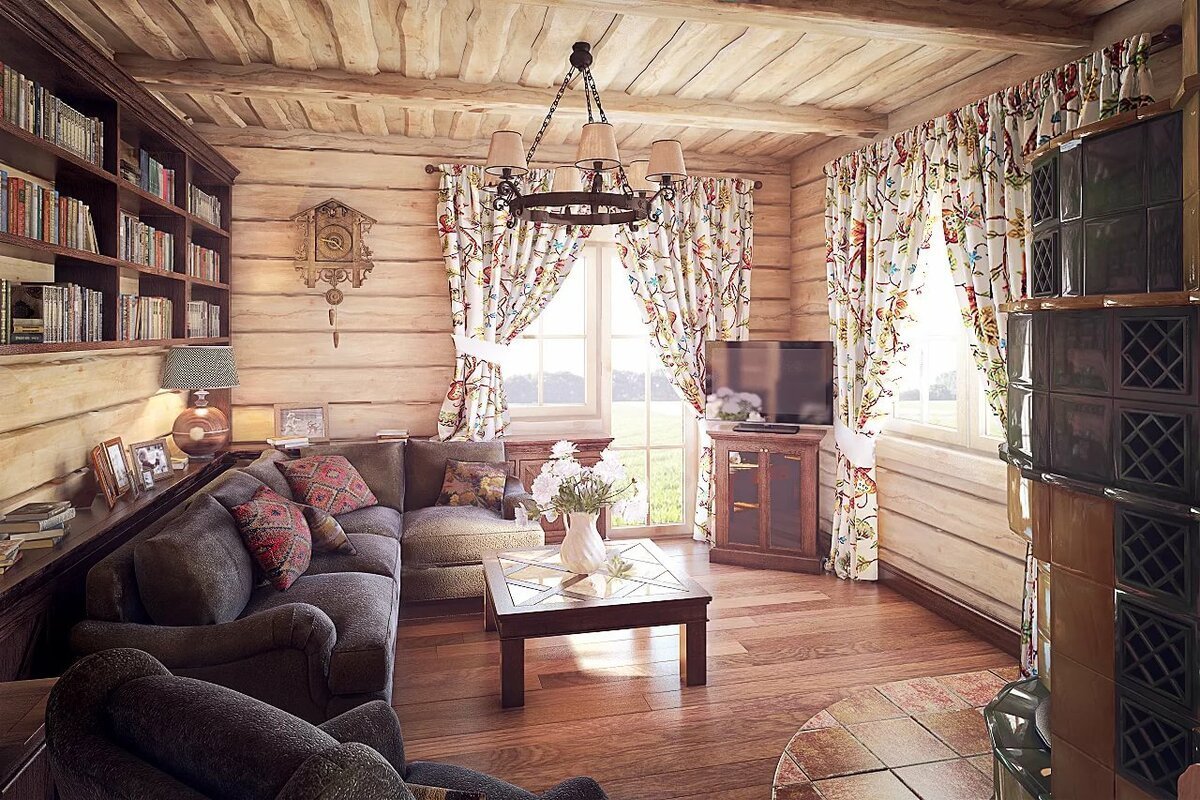 Интерьер в стиле русская усадьба в бревенчатом доме
