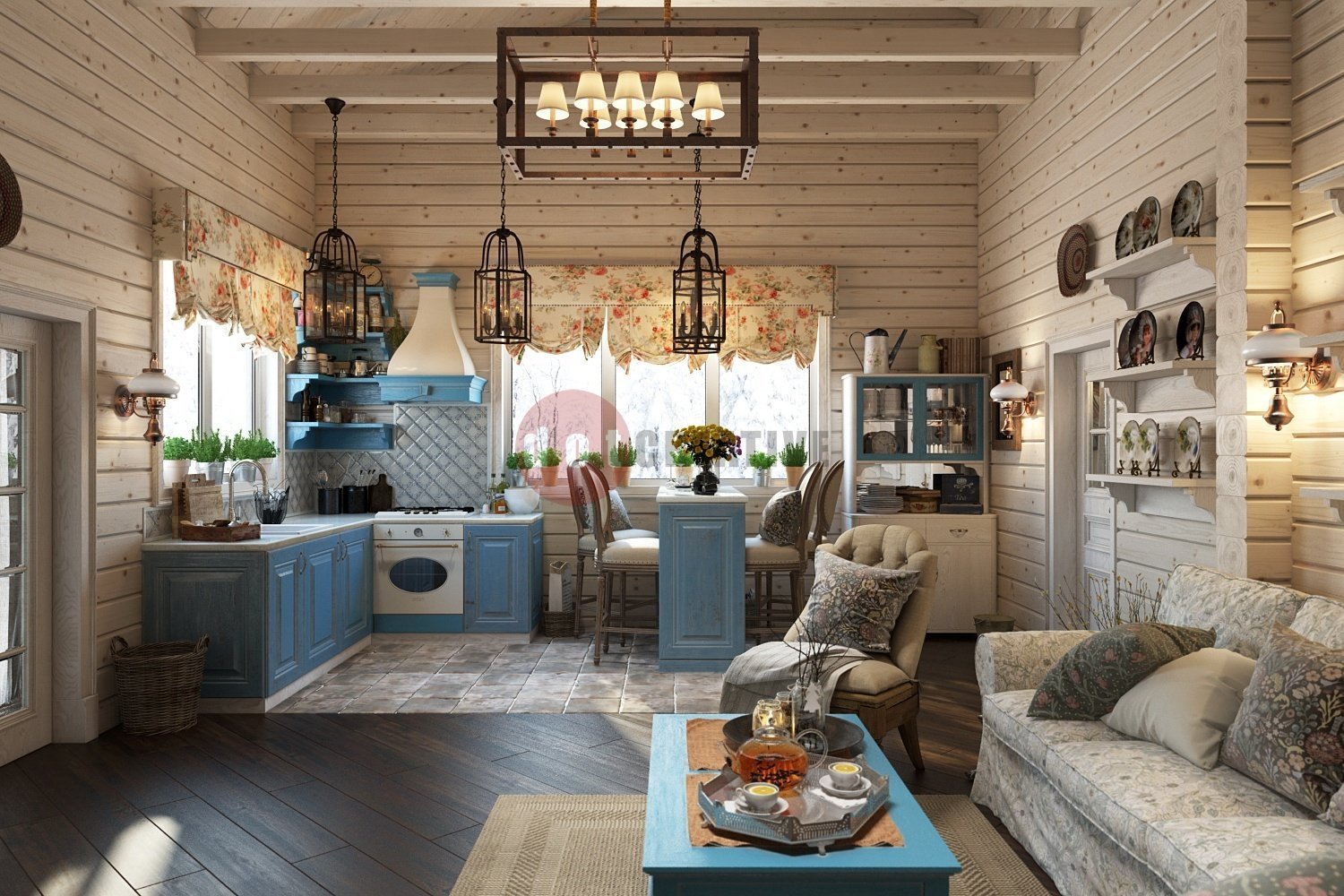 Интерьер дома из клееного бруса в стиле Прованс
