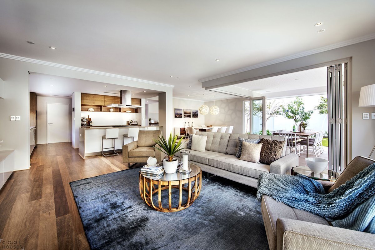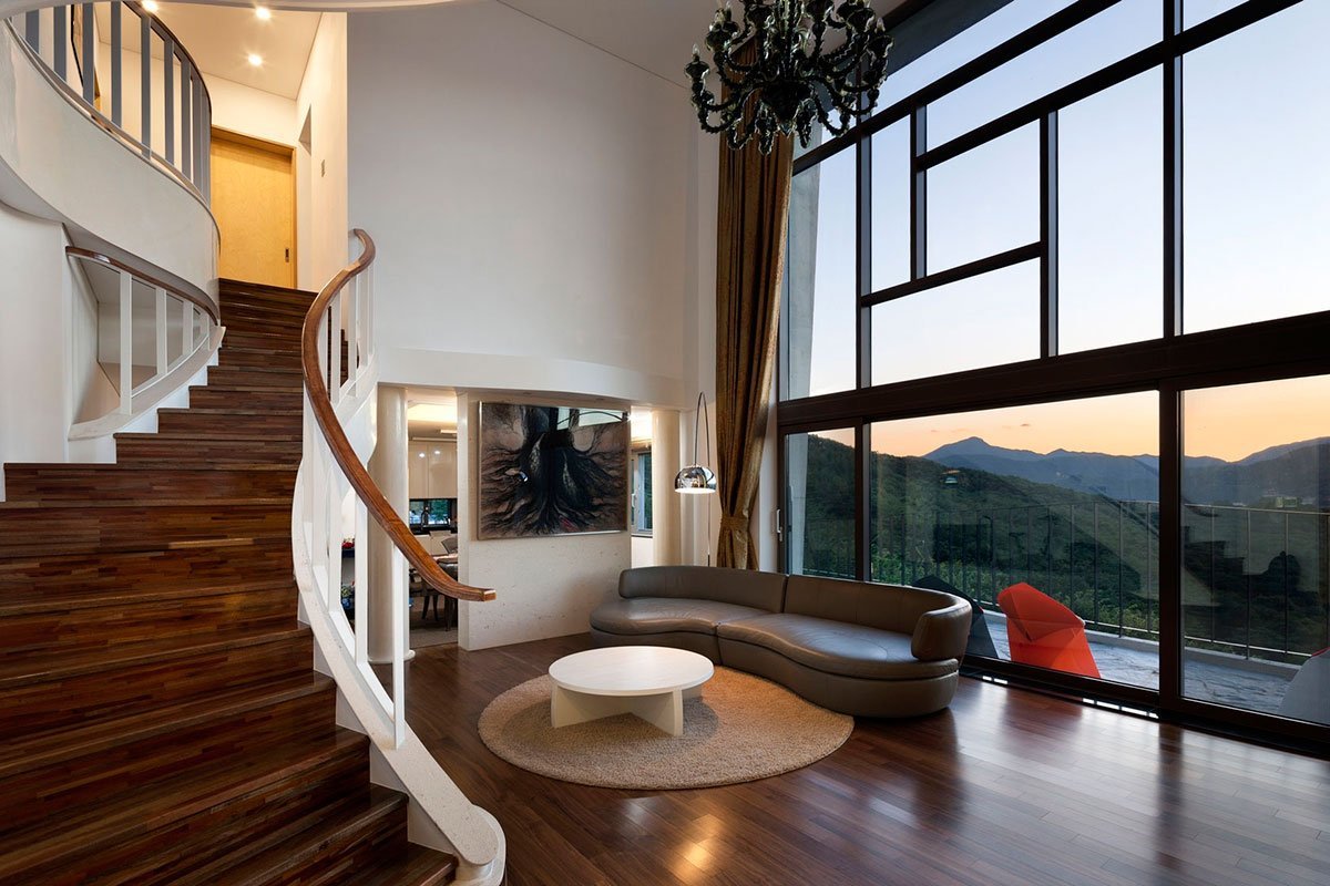 Дом с большой гостиной и панорамными окнами