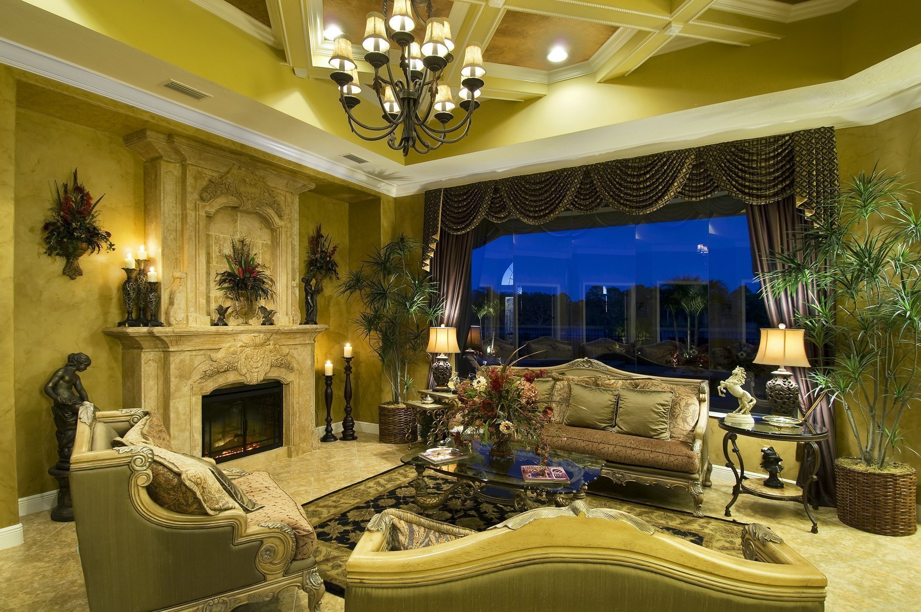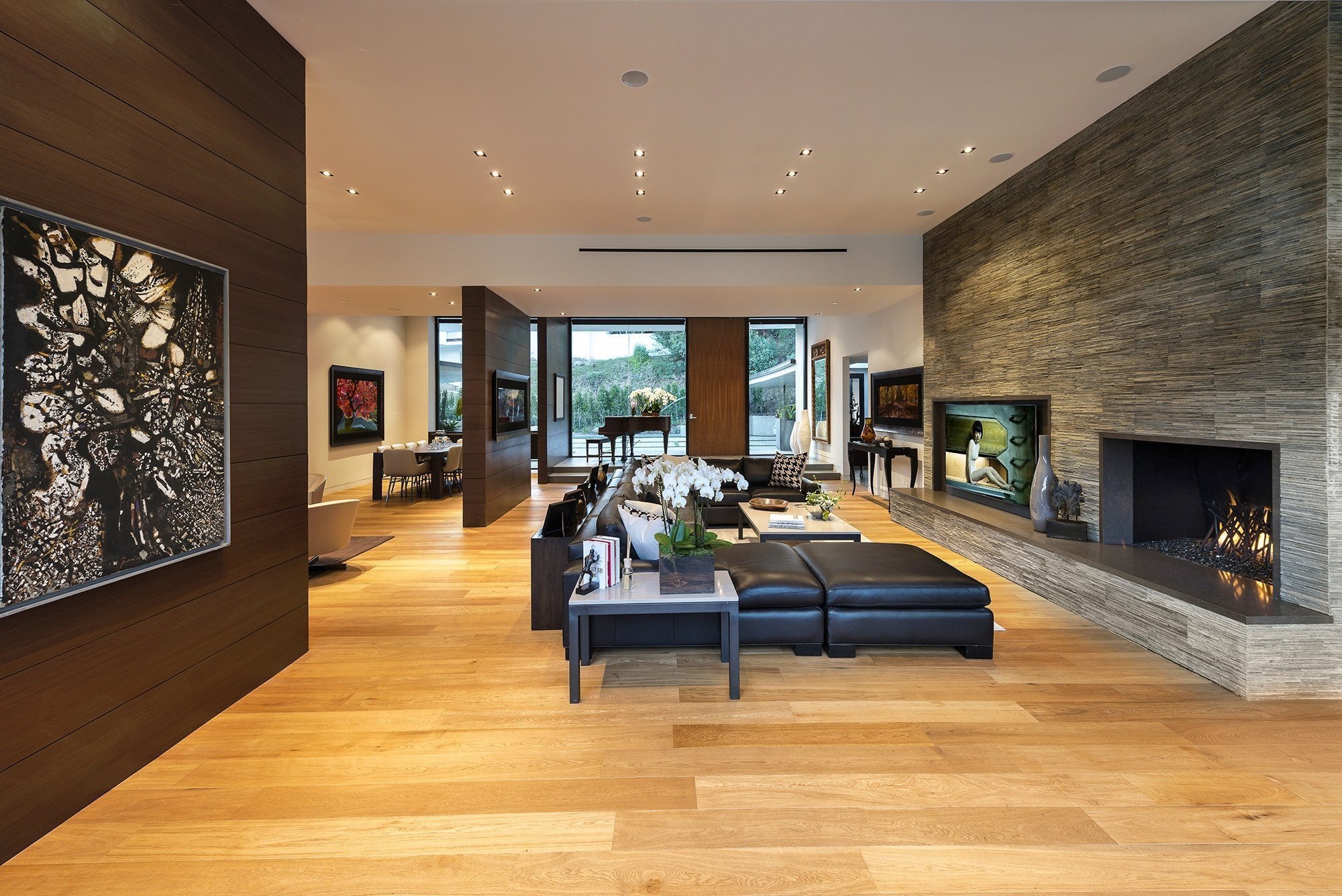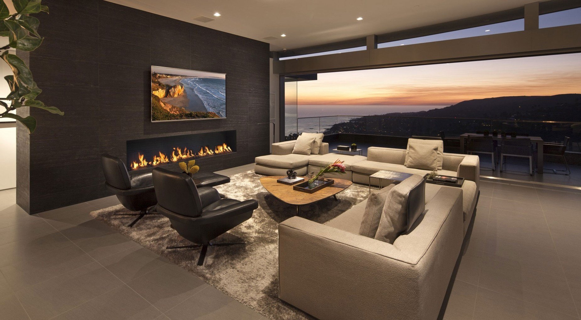 Гостиная вилла Лос Анджелес камин