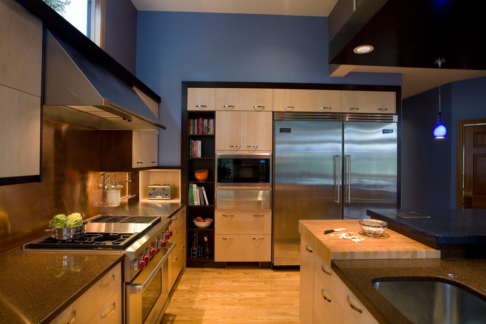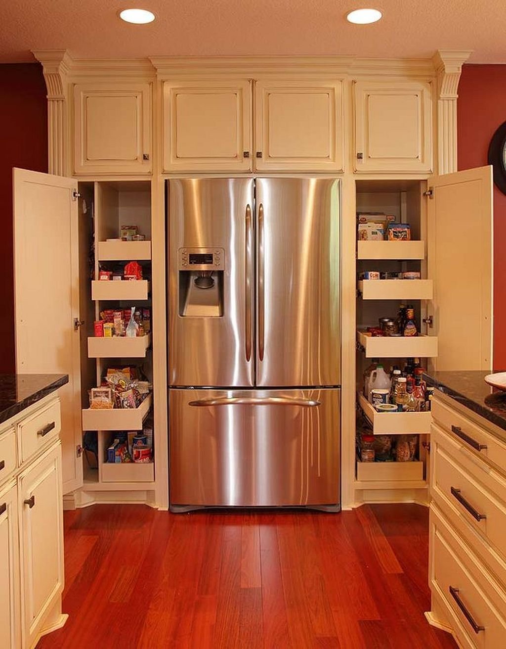Холодильник Сайд-бай-Сайд в интерьере с кухней икеа