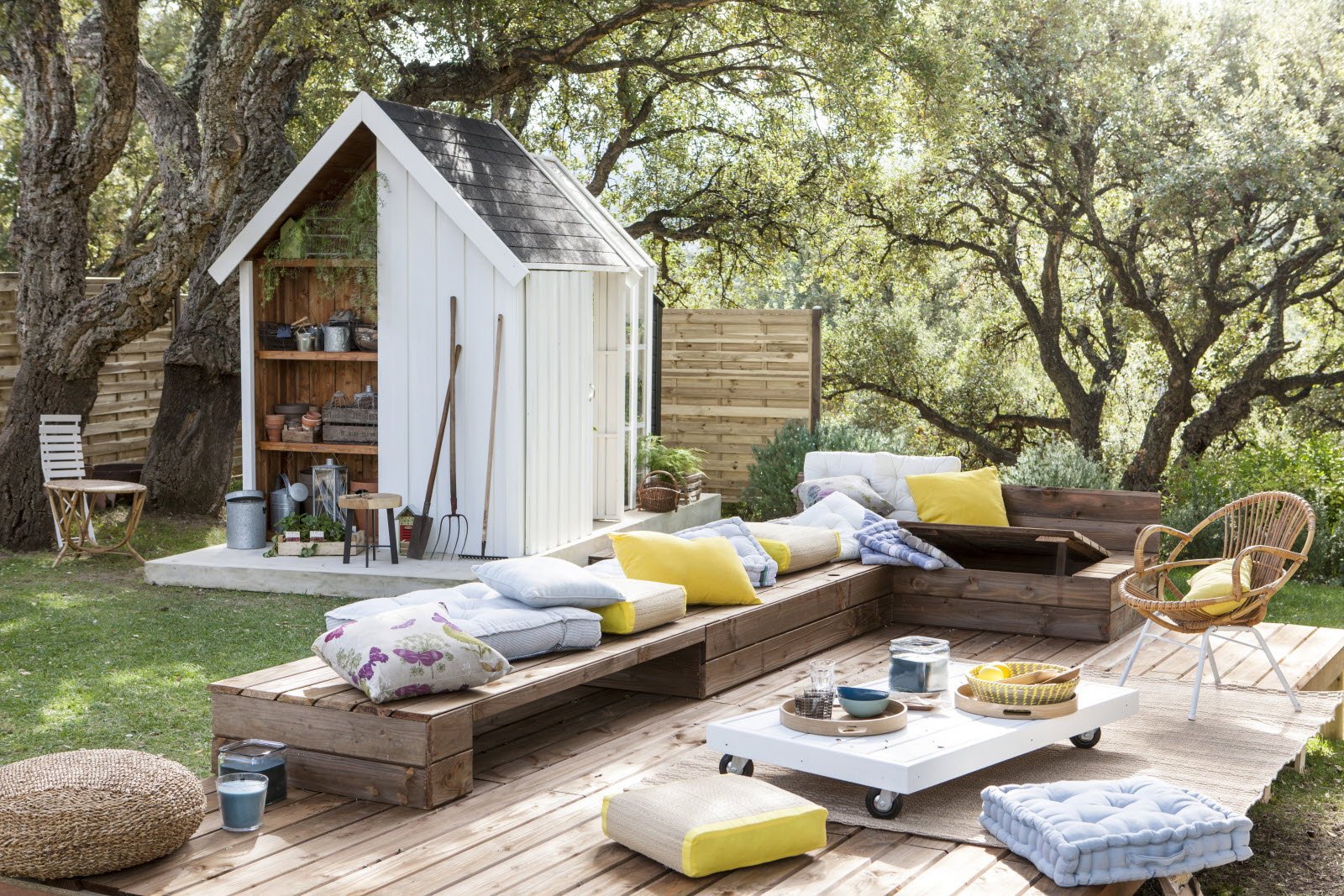 Лаунж зона на даче из поддонов