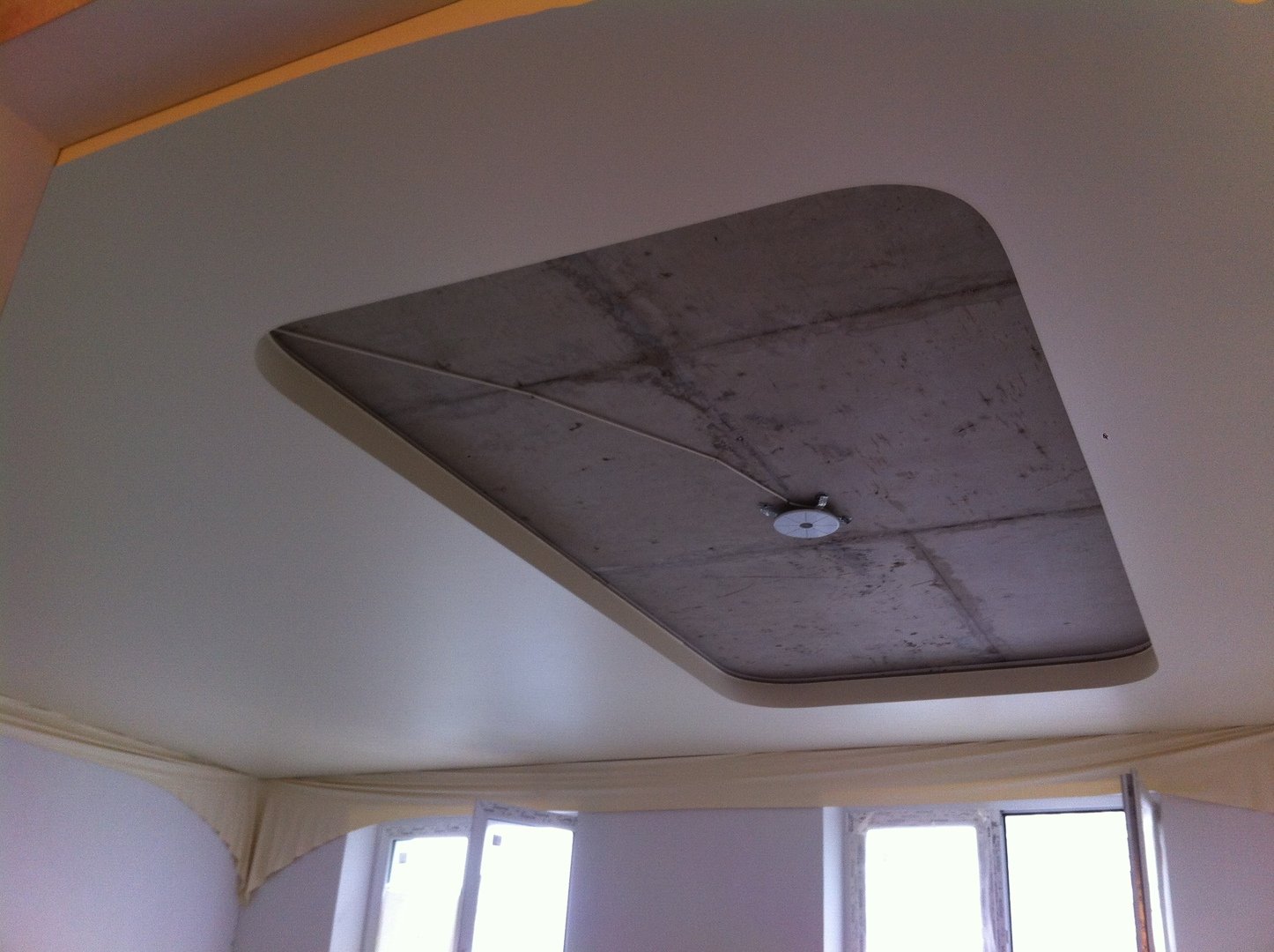 Обход люка натяжным потолком