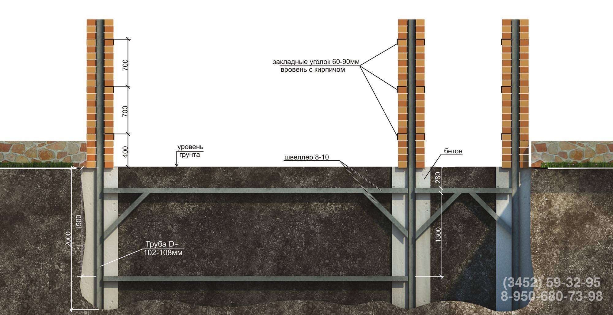 Бетонирование столбов для ворот схема