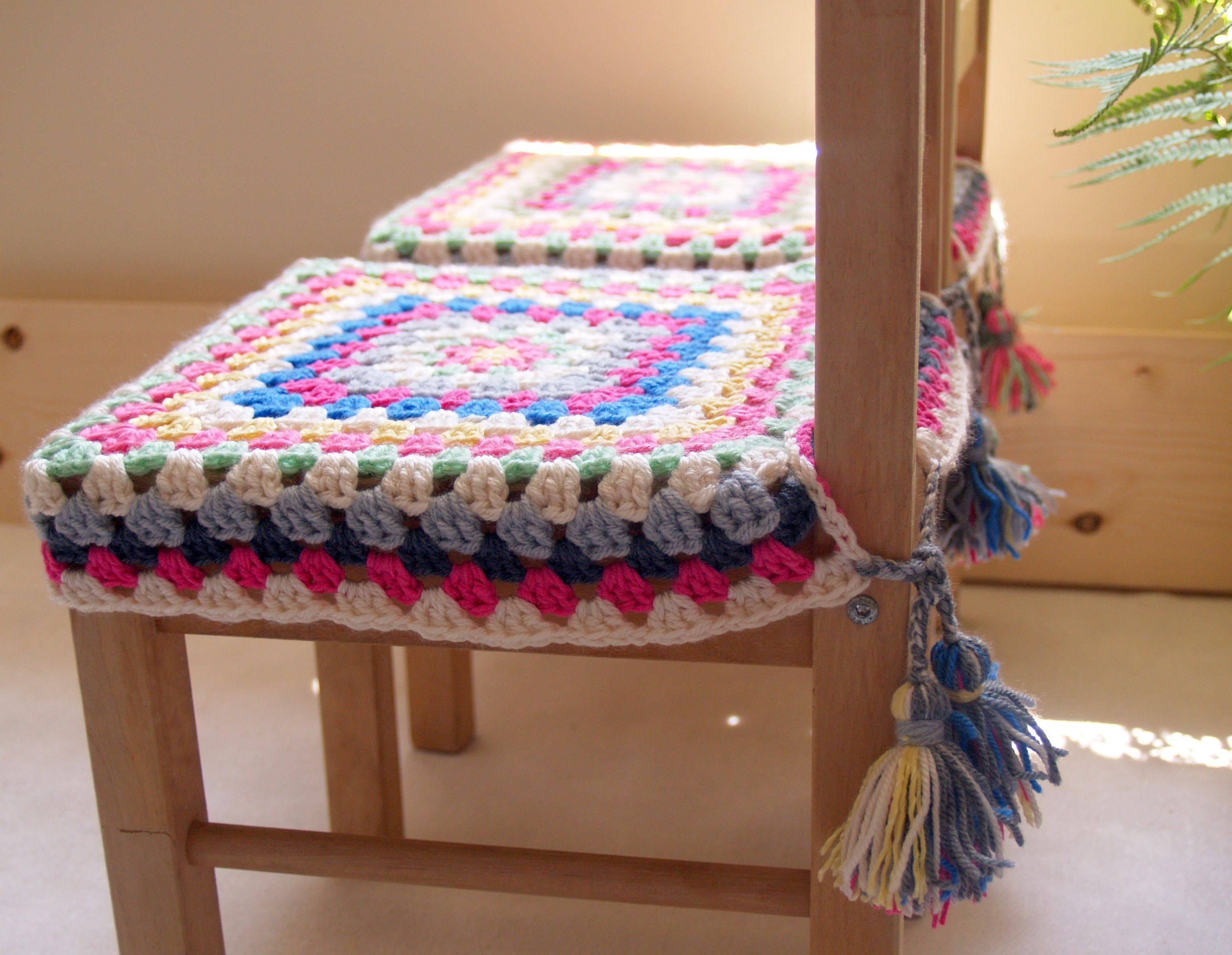 Сидушка на стул бабушкиным квадратом крючком