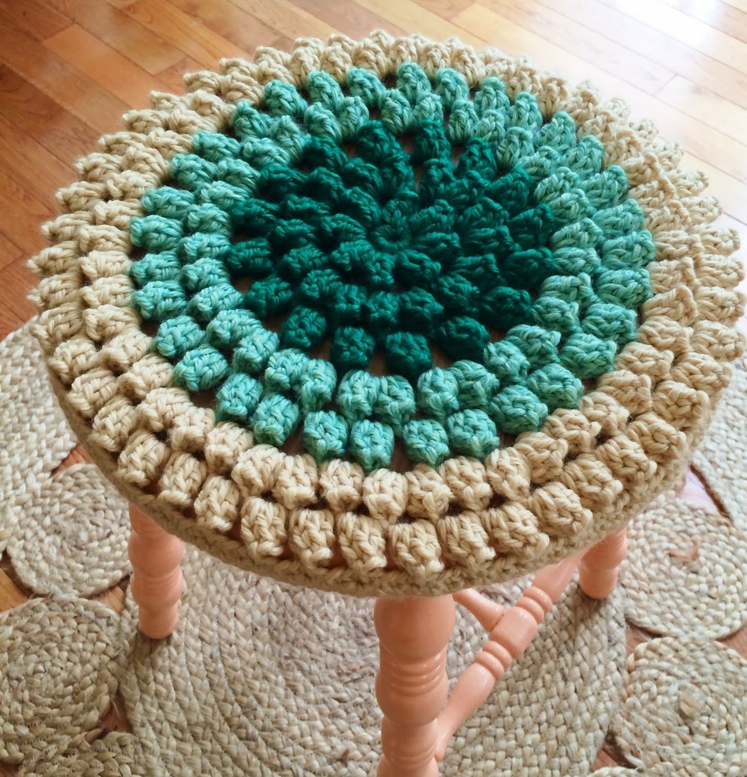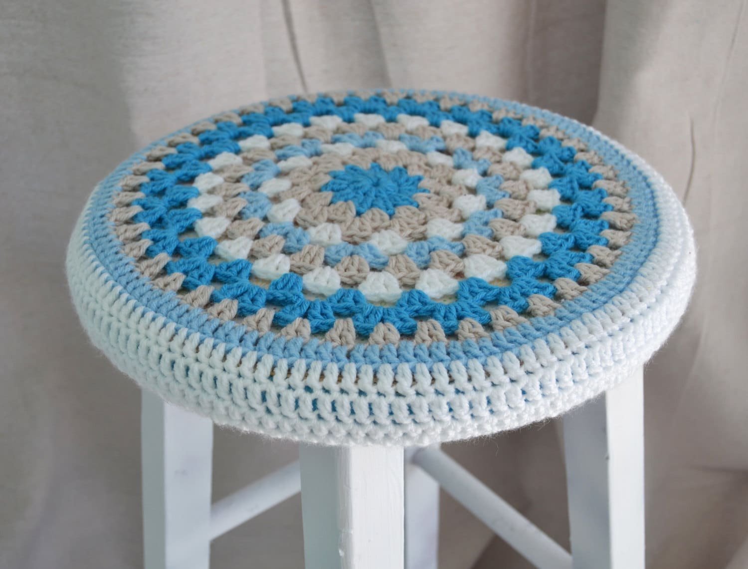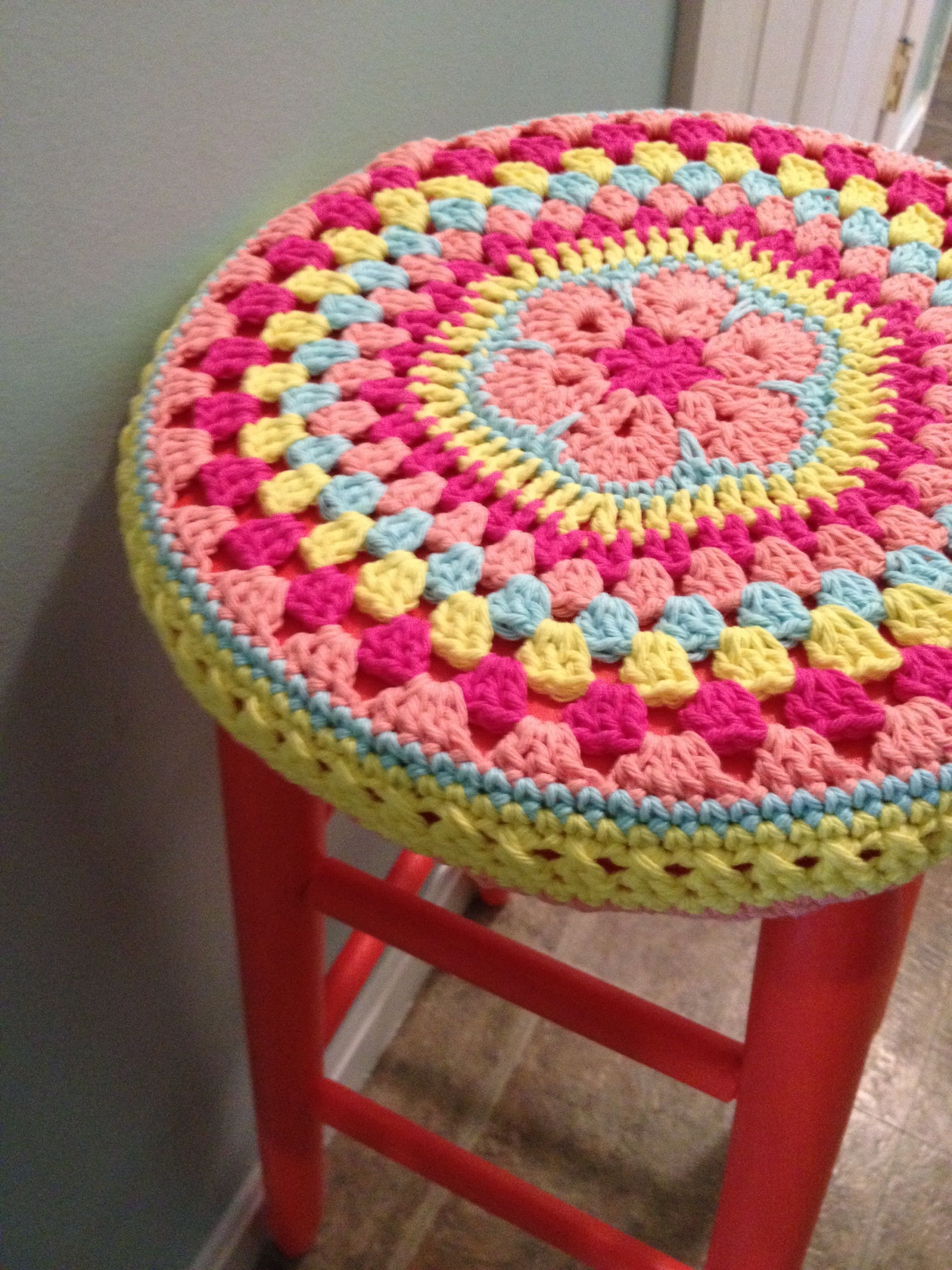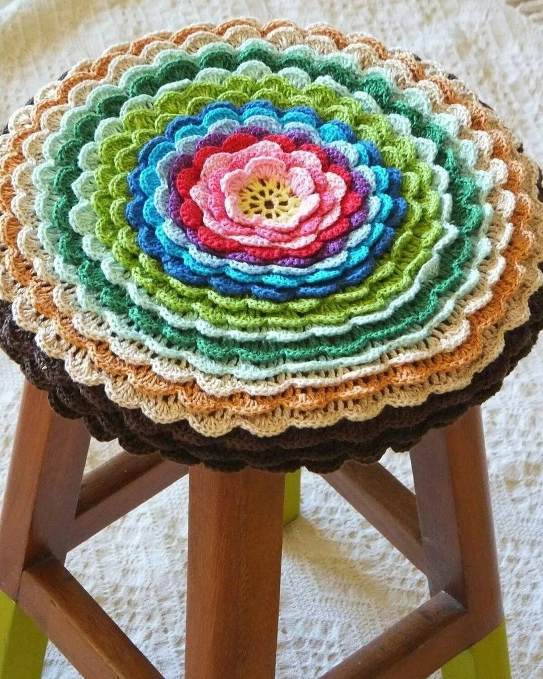 Вязание крючком чехлы на табурет двухцветные круглые