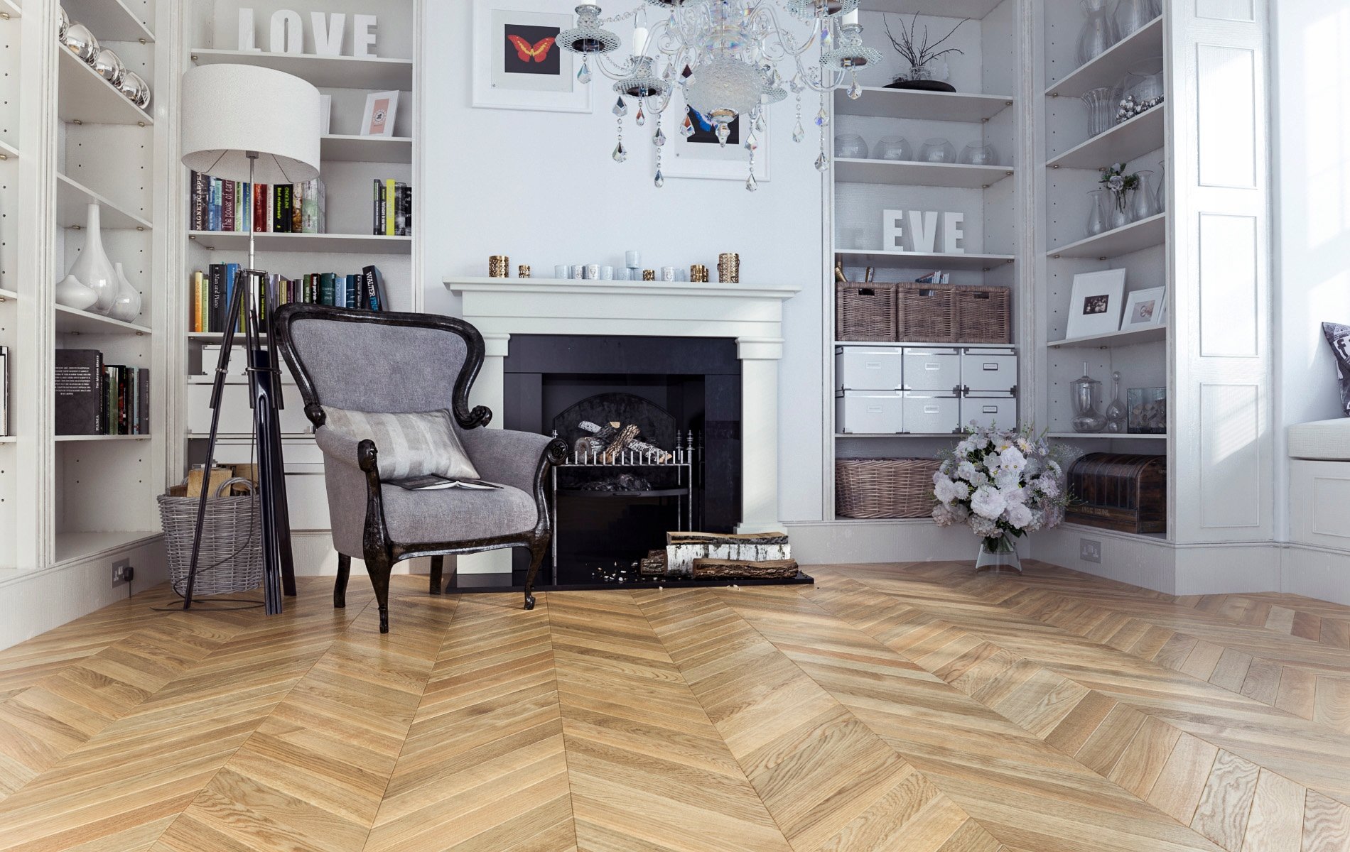 Паркет елочкой в скандинавском стиле