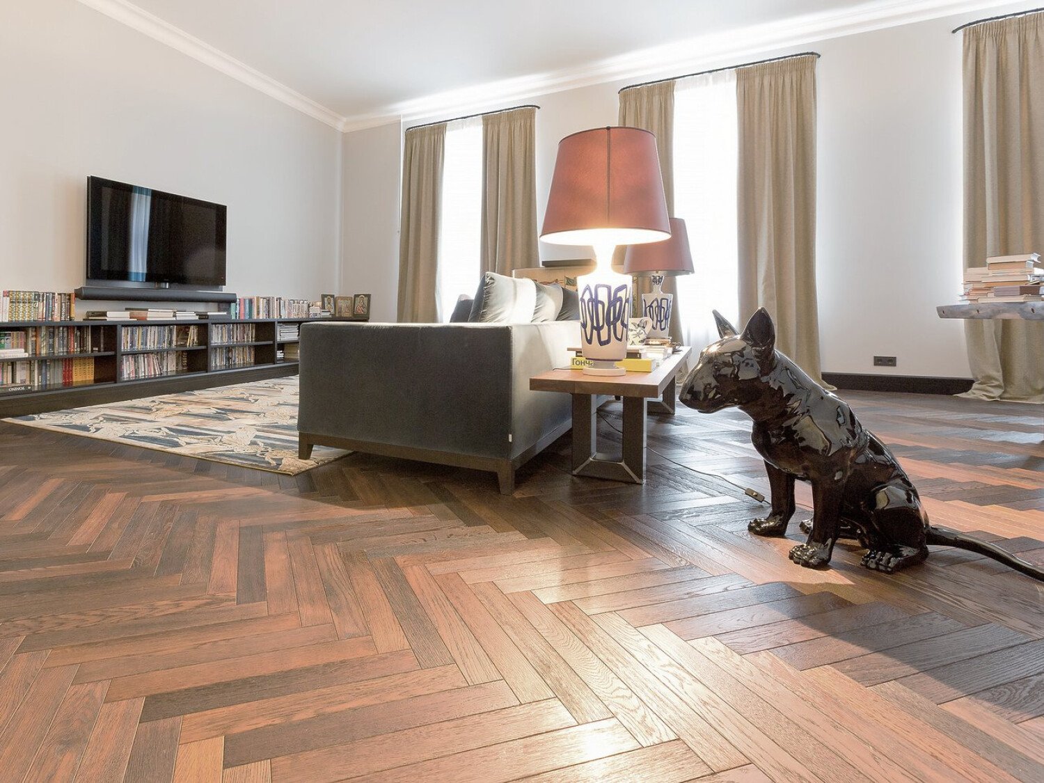 Темный пол елочкой в интерьере