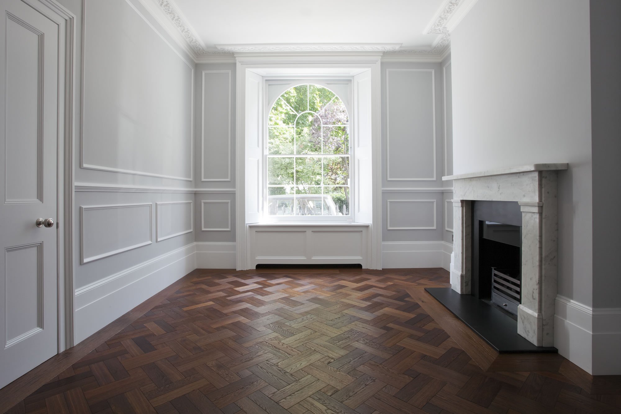 Комната с паркетом елочкой