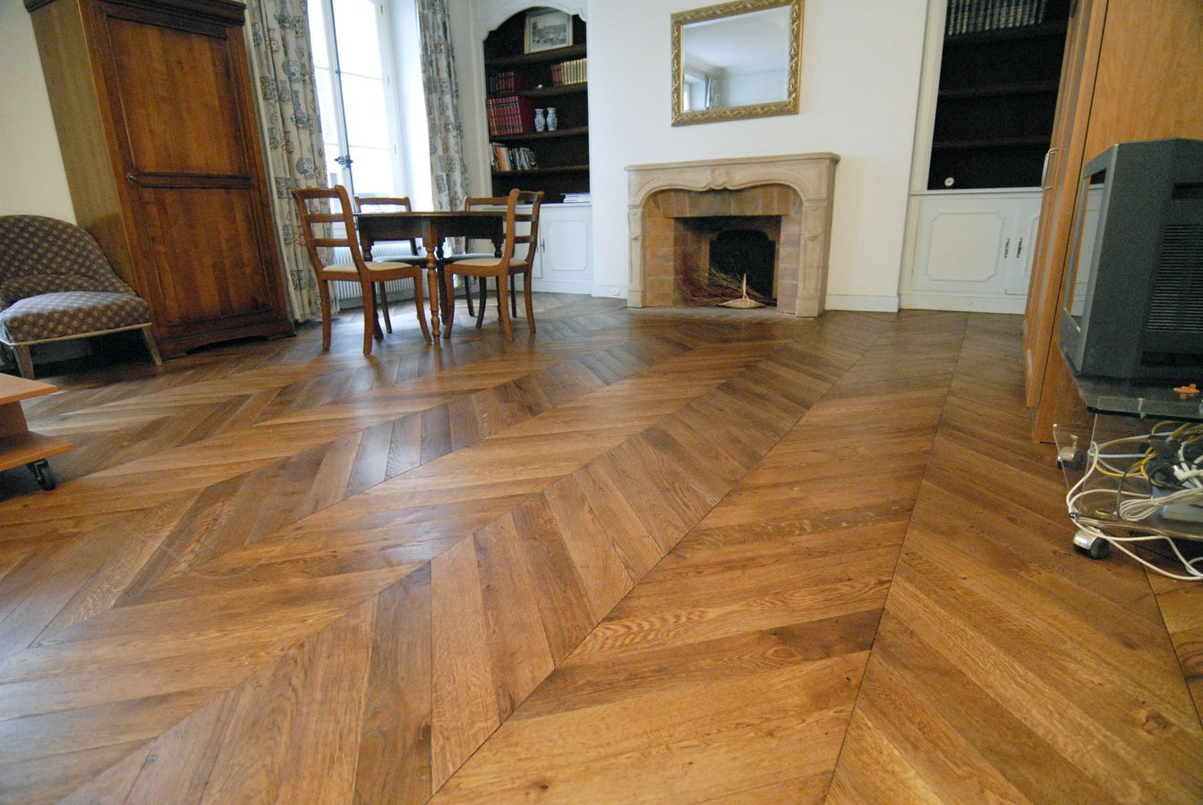Пол паркет елочка французская
