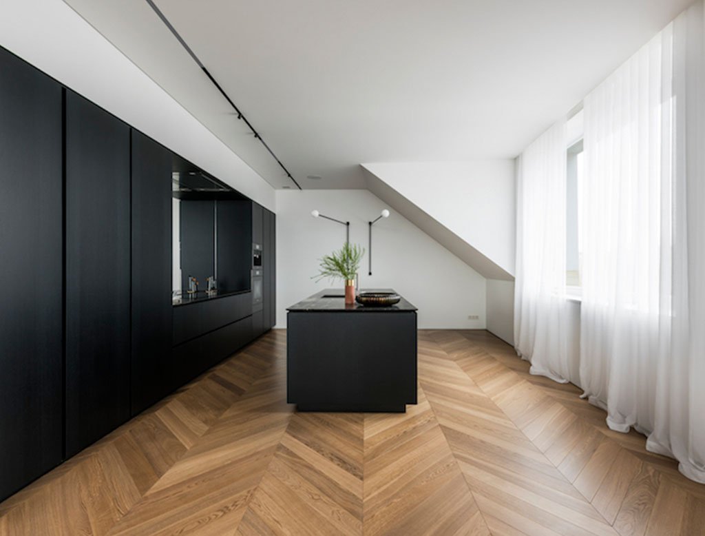 Паркет елочкой в интерьере лофт