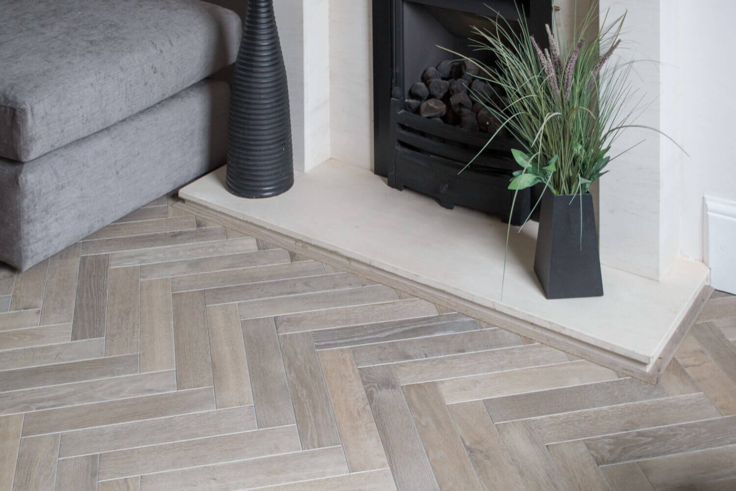 Серый пол елочкой в интерьере