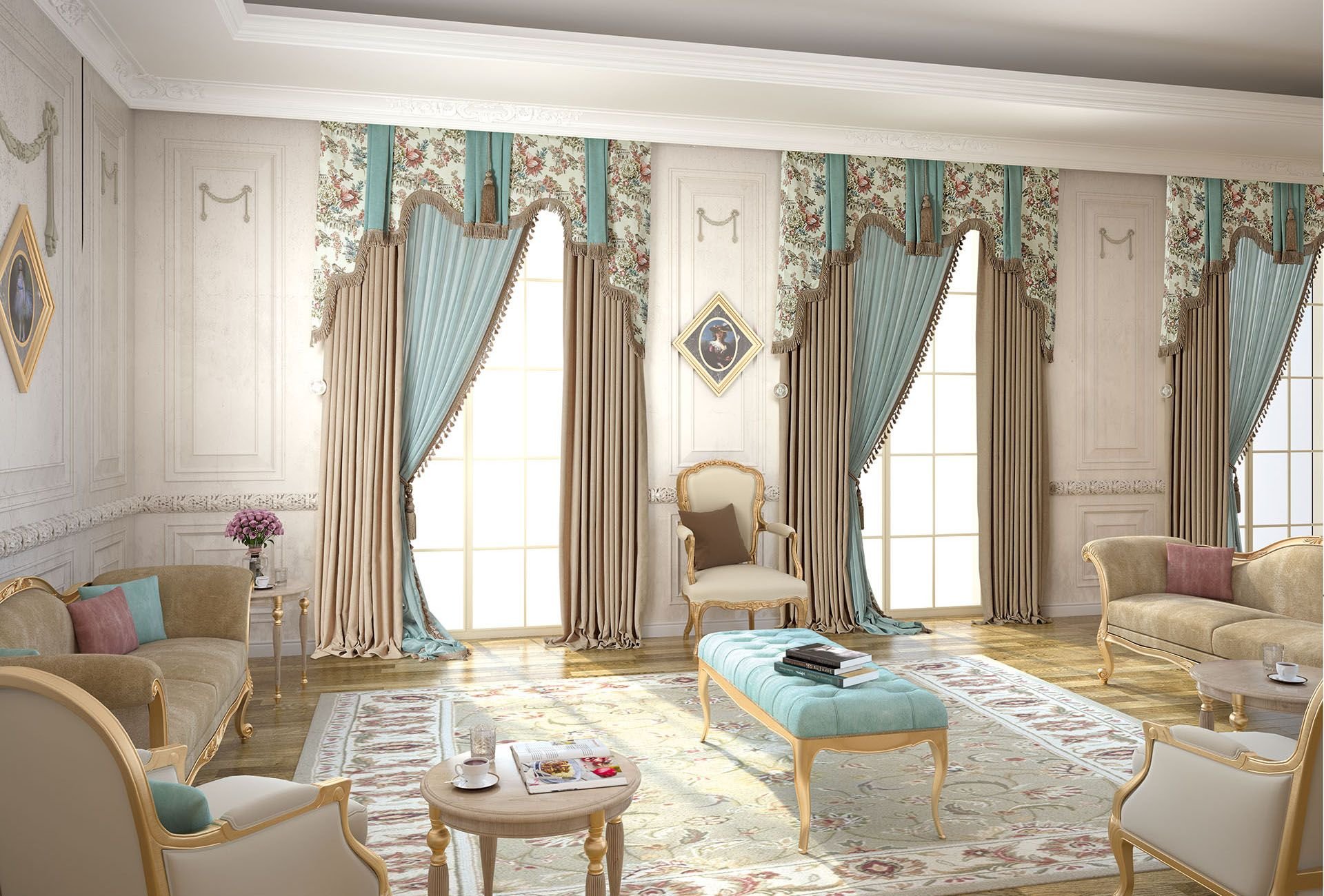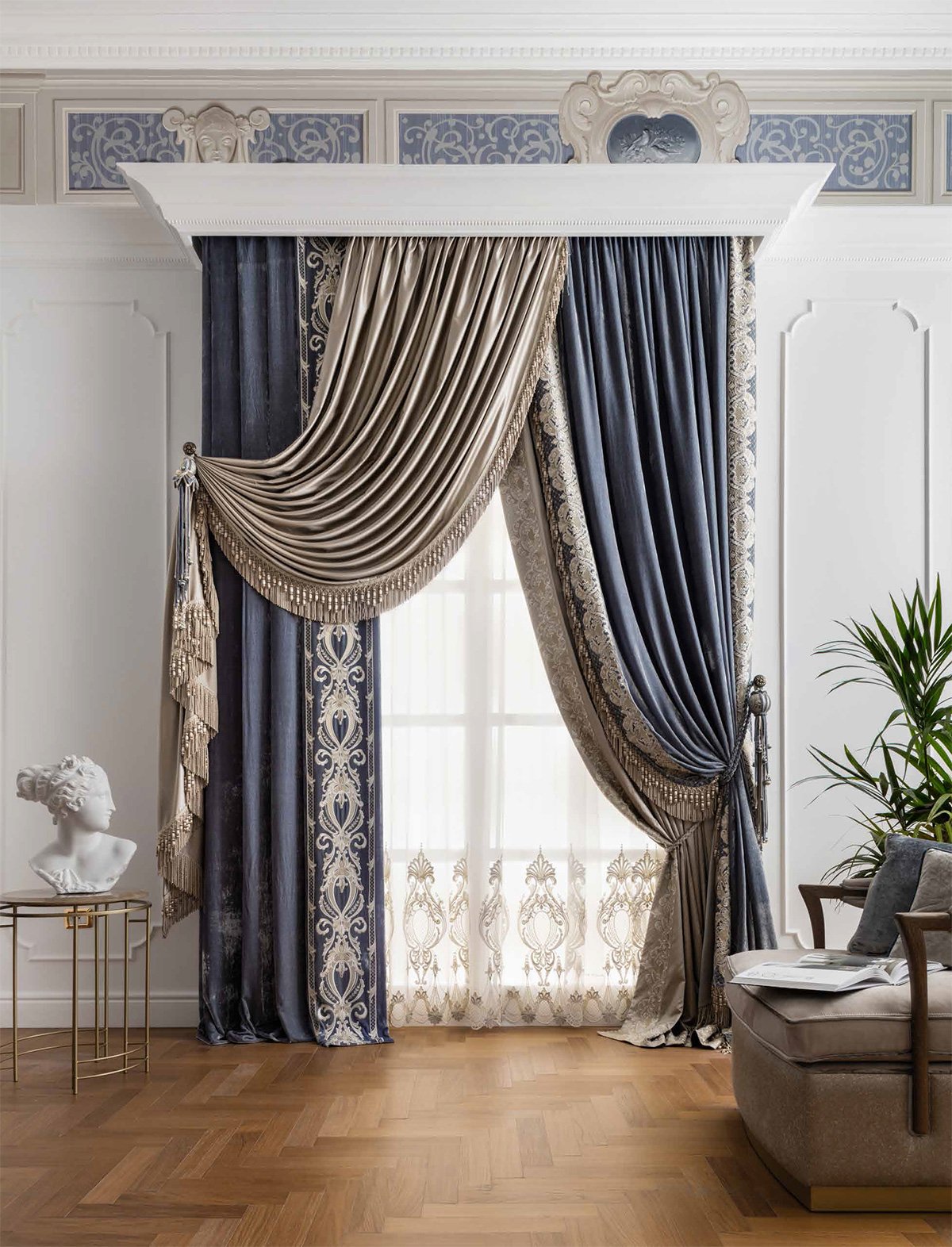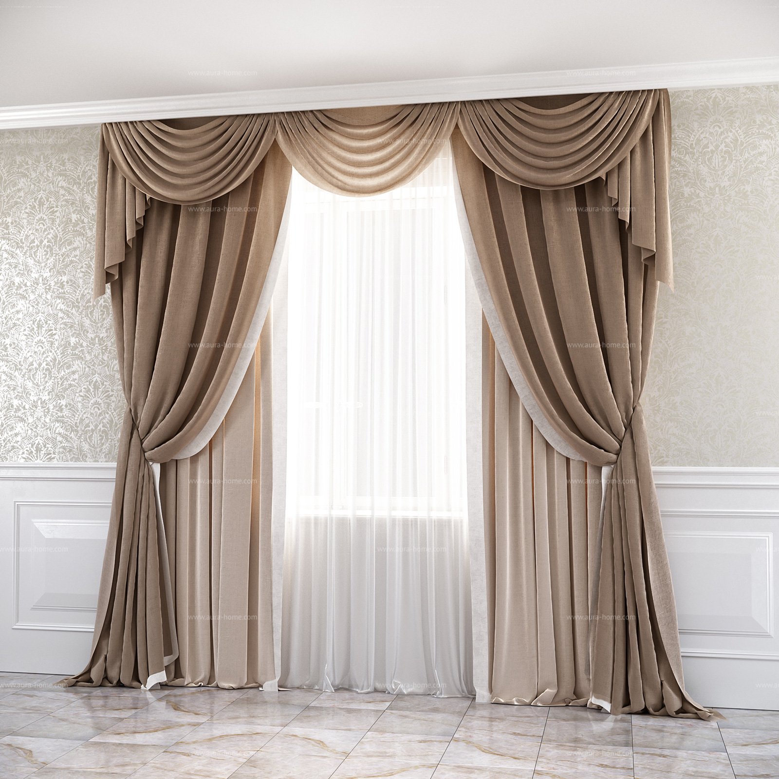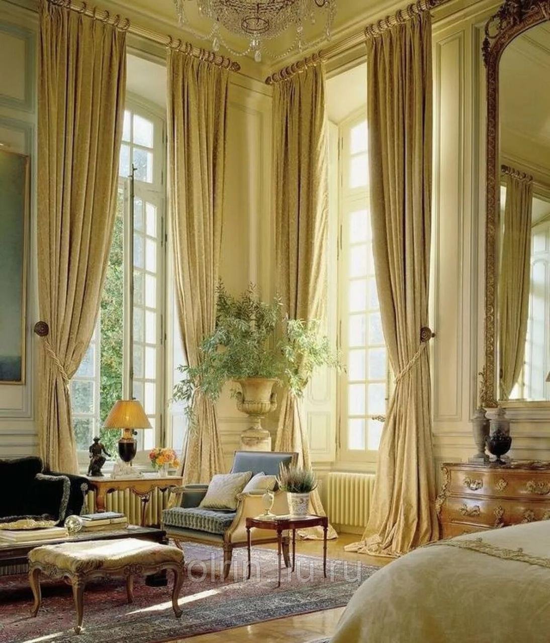 Французские шторы в гостиную в классическом стиле