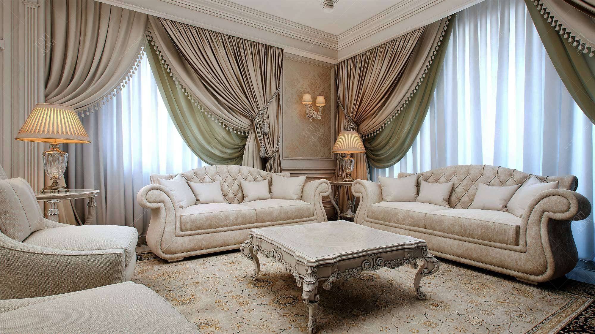 Шторы для гостиной в классическом стиле