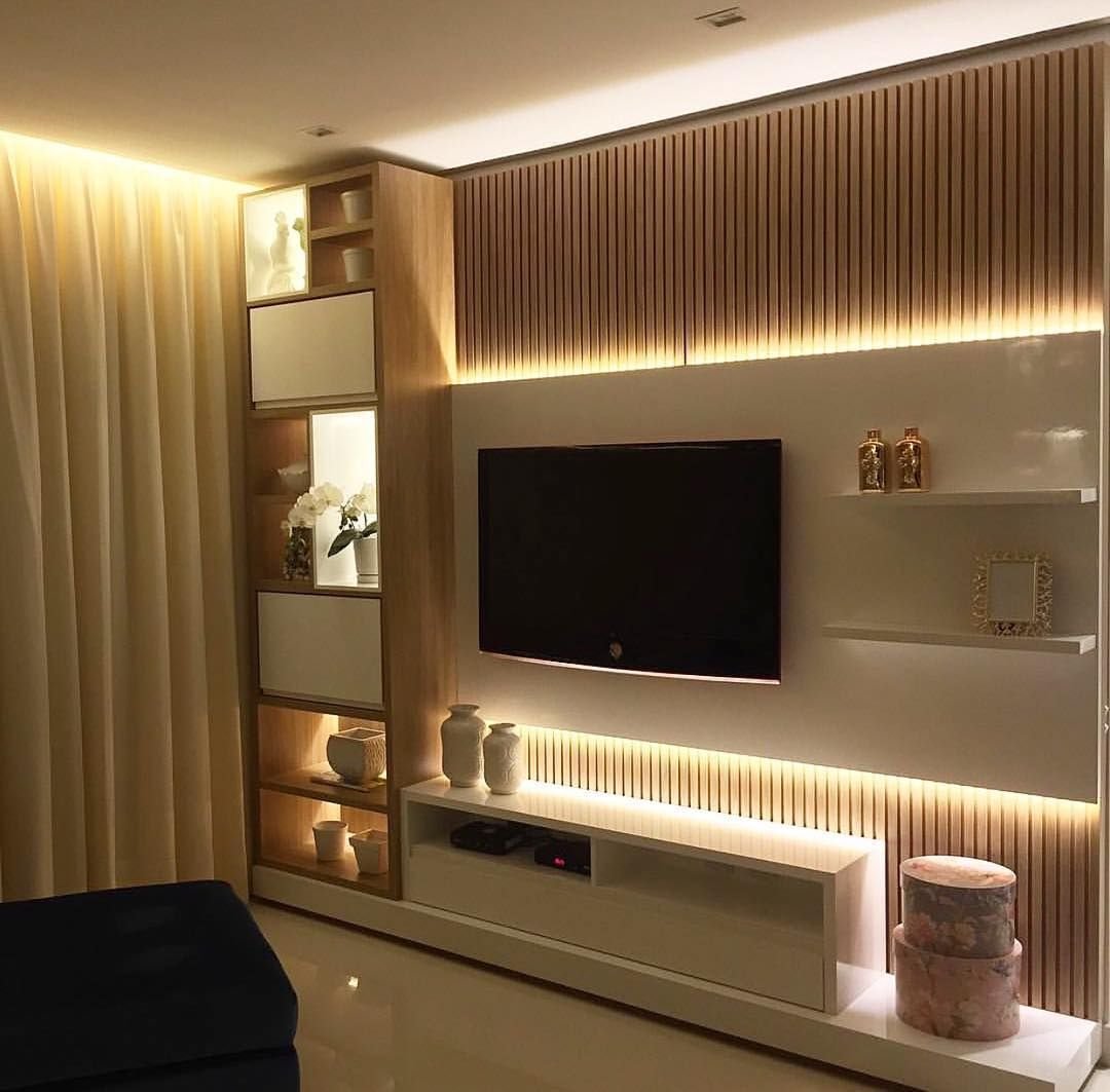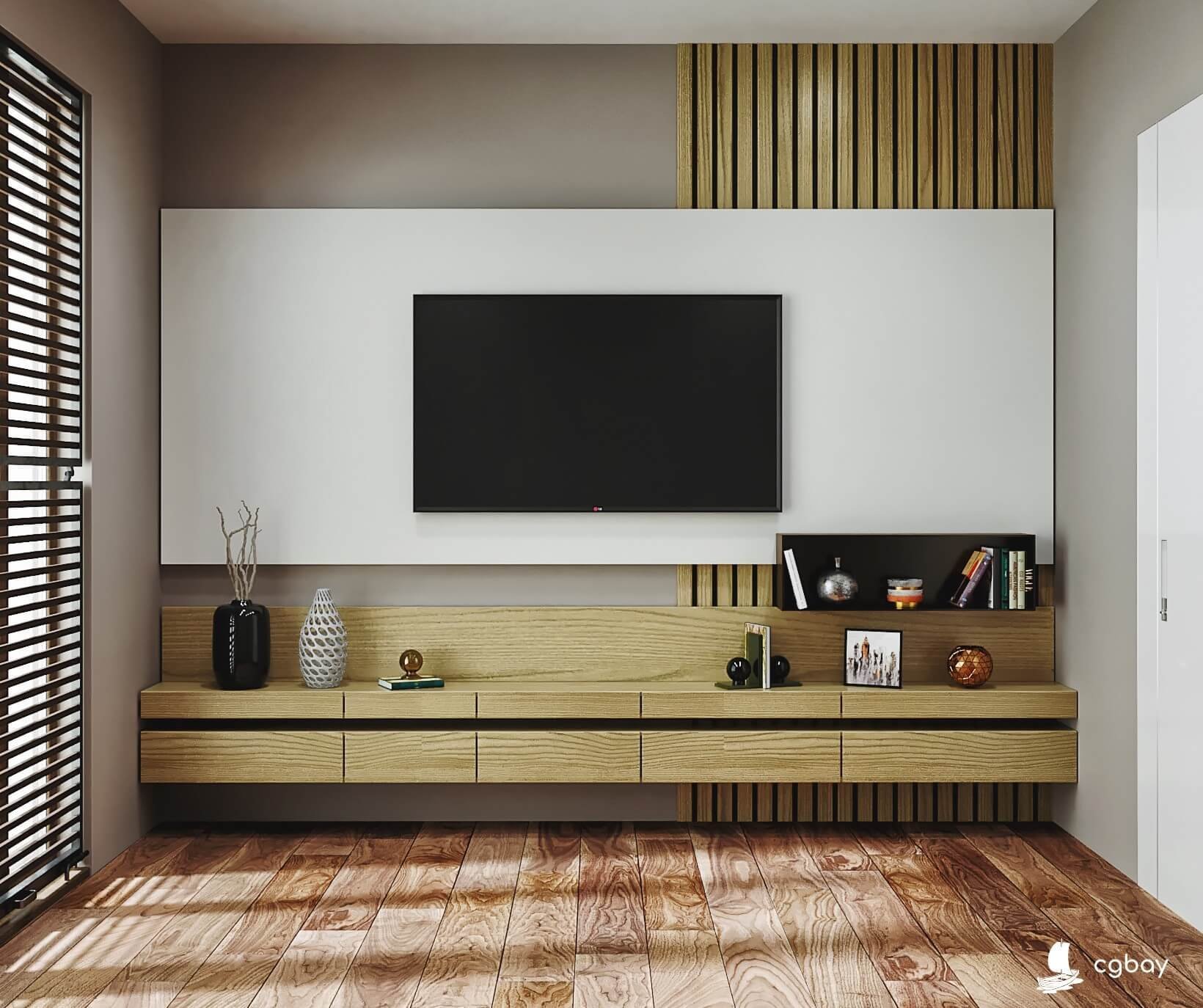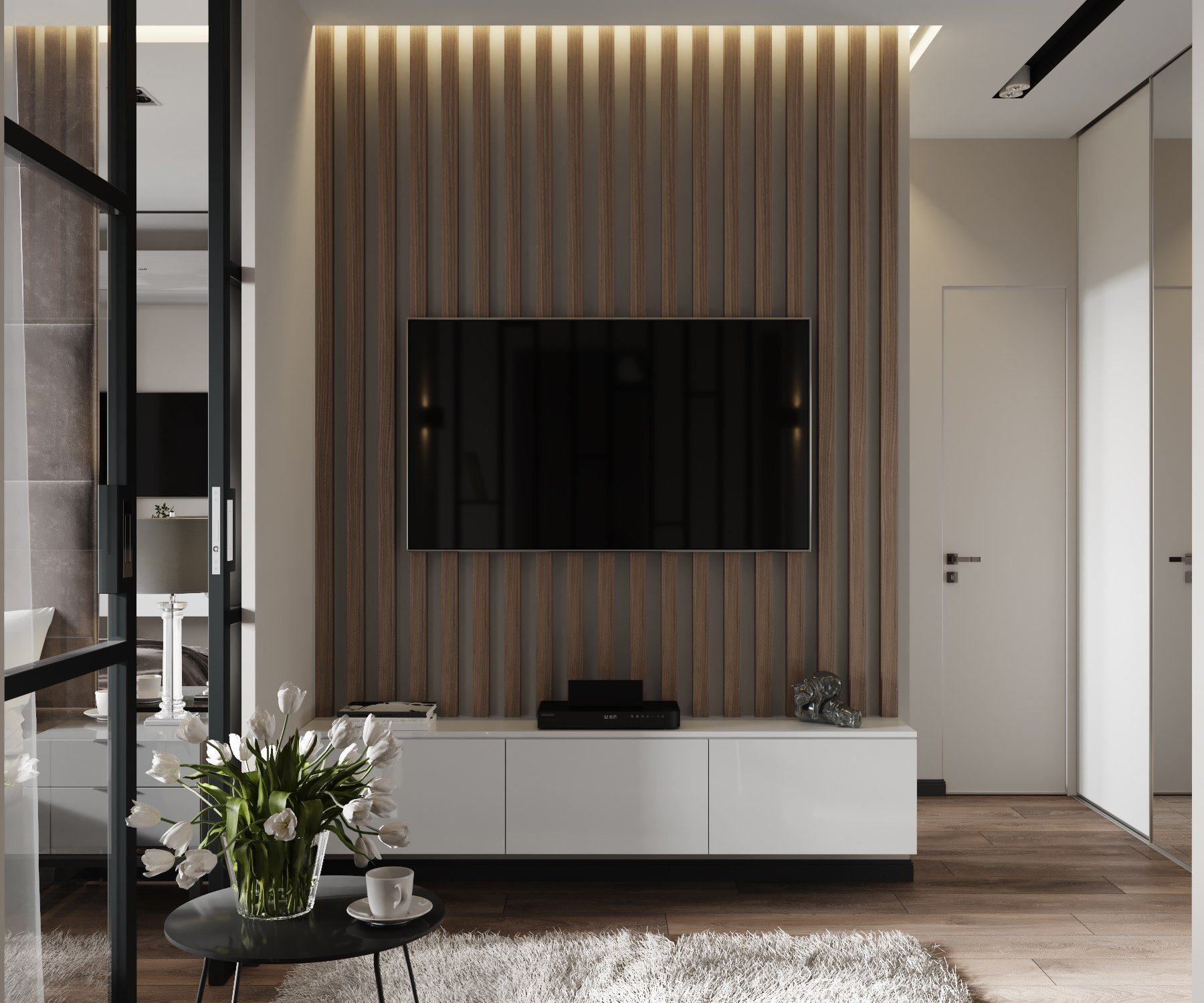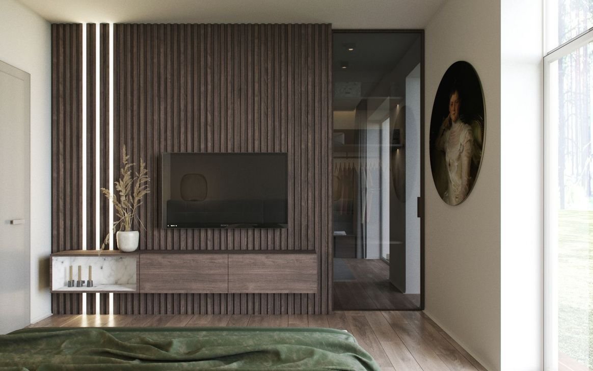 Стена с рейками под телевизор