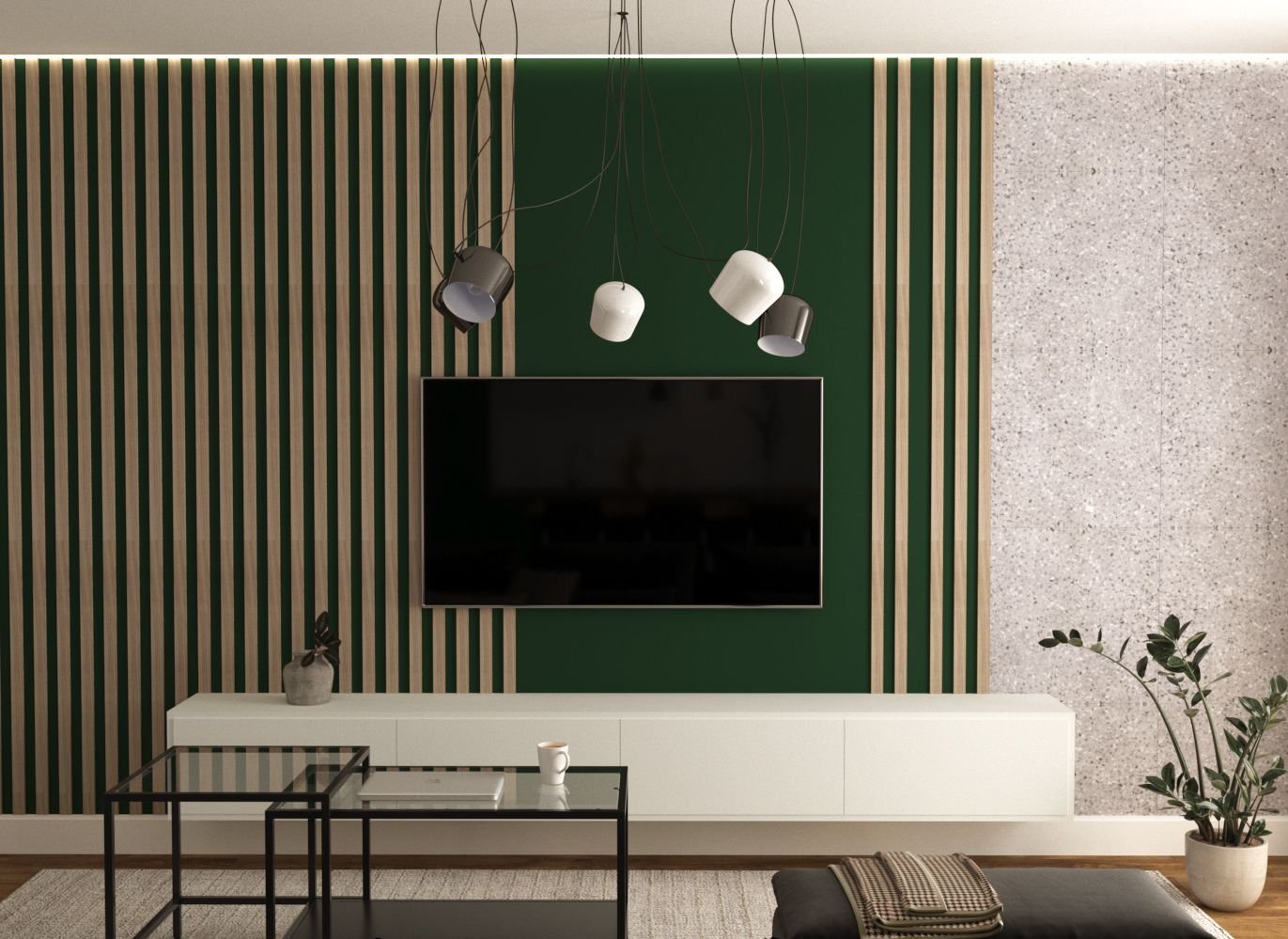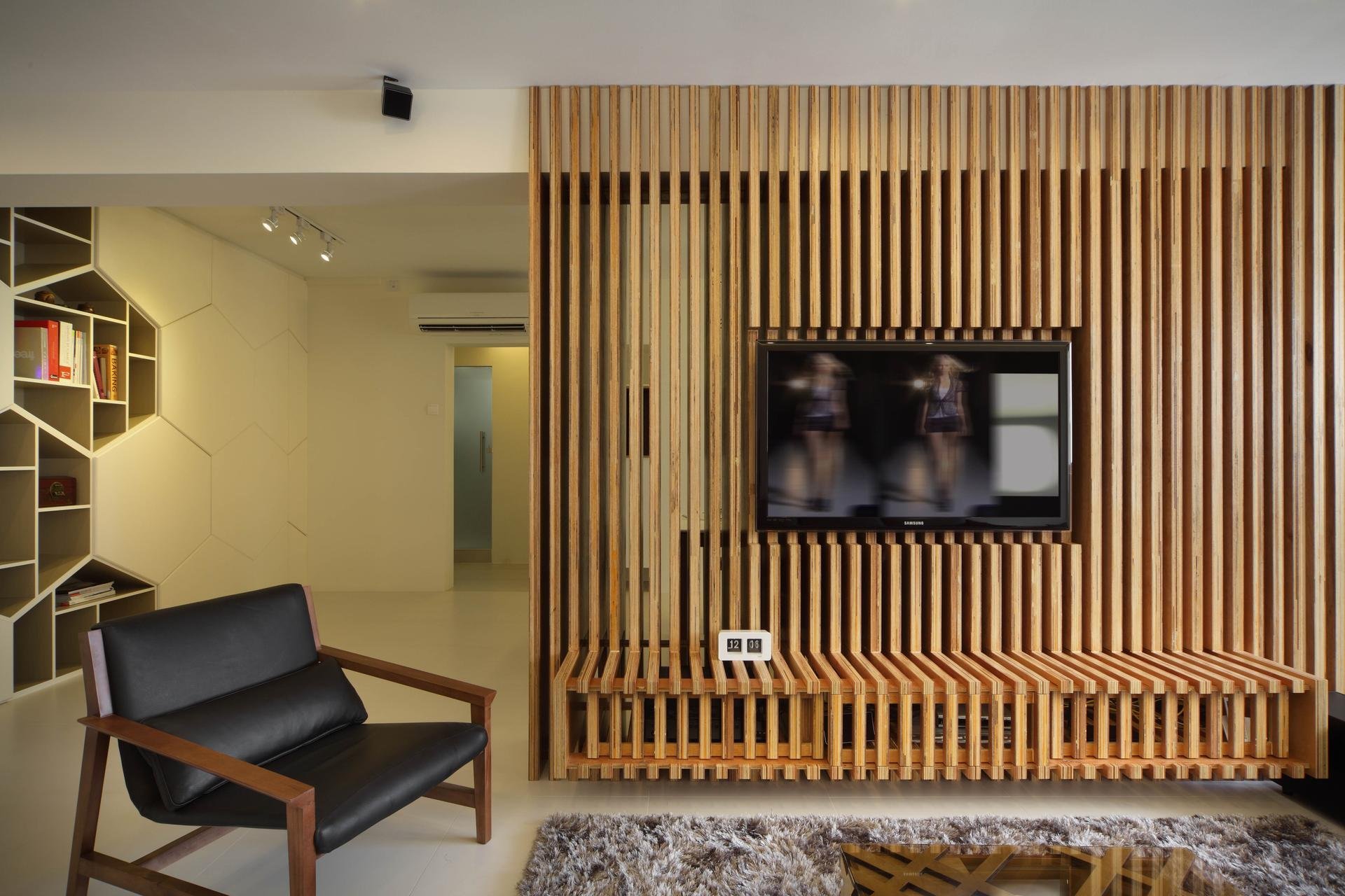 Деревянные рейки в зоне телевизора
