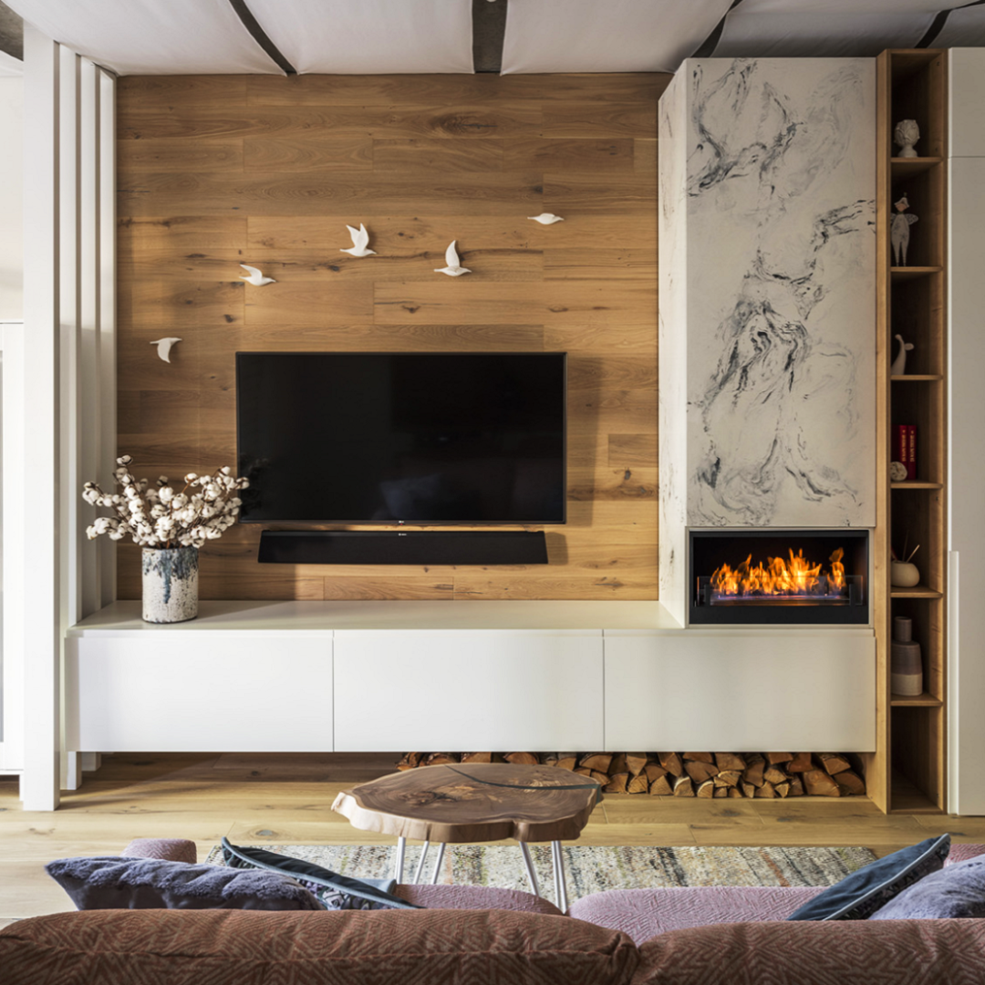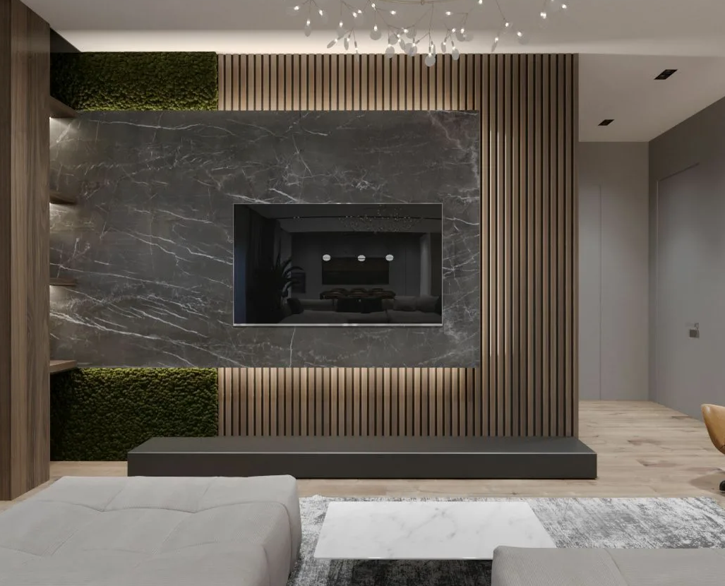 Стеновые панели в зоне телевизора
